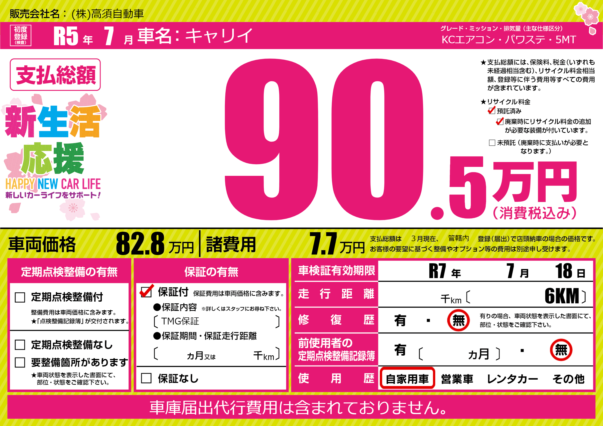 なし | 車検制限 | R7年7月18月 |