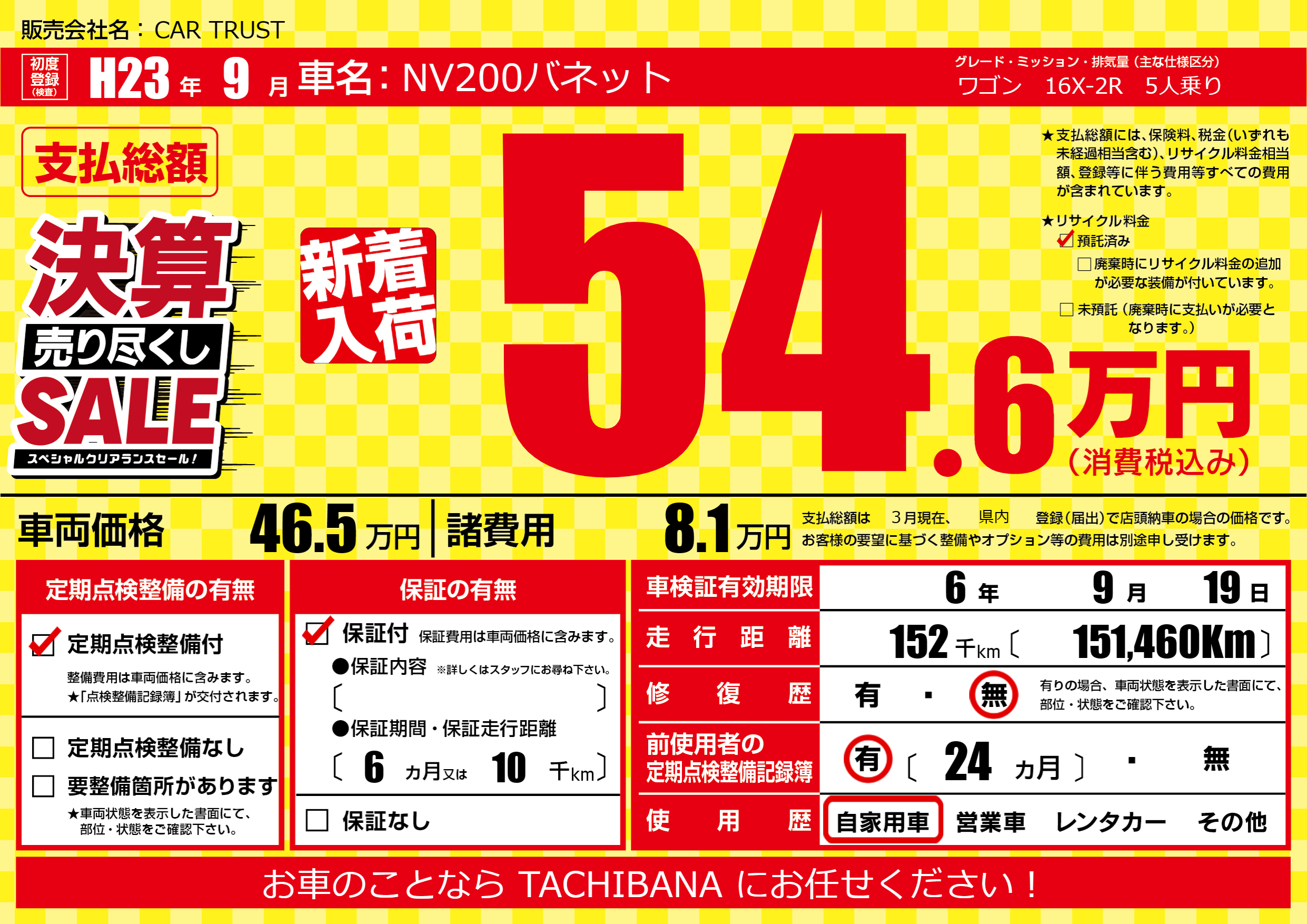 | 車検制限 | 6年 9月 19日 | ||