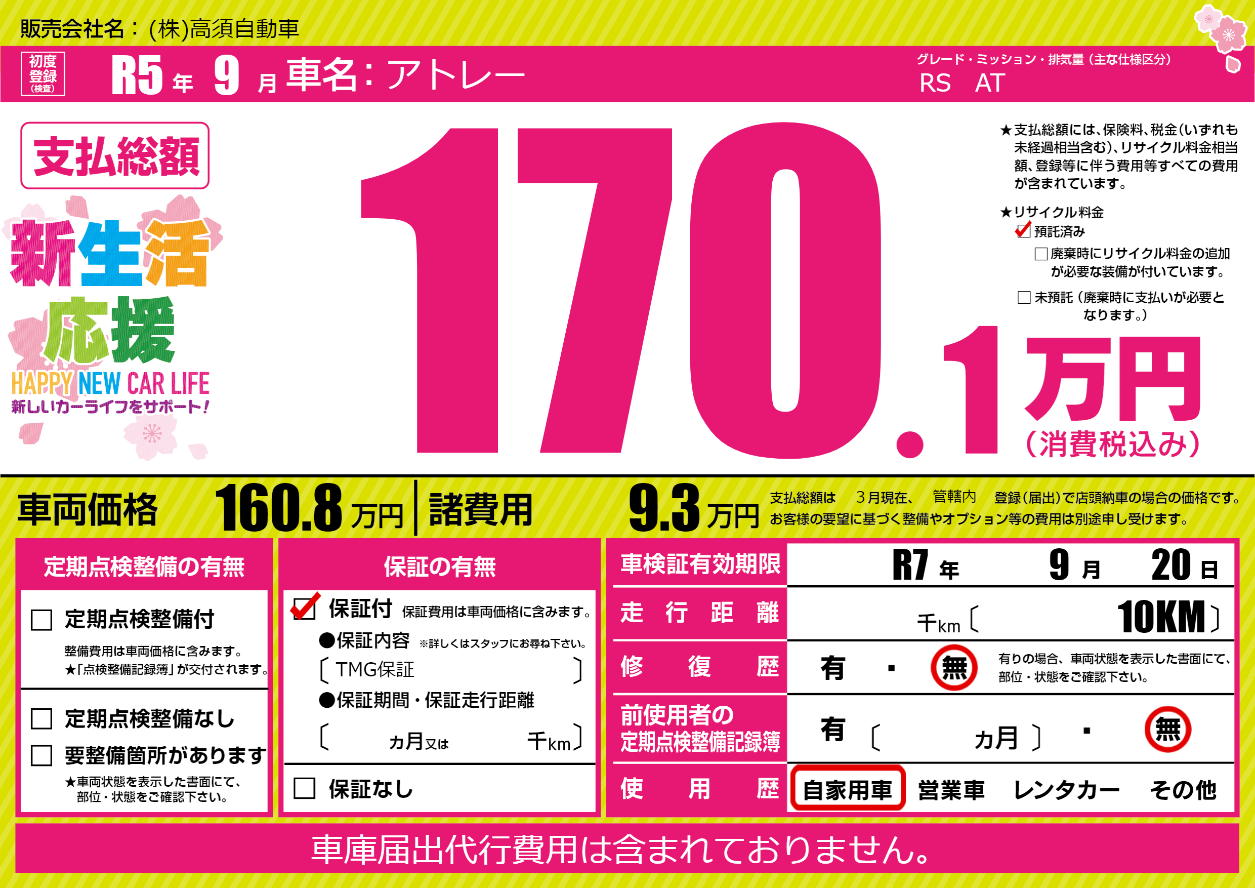 保証付き 保証内容(TMG保証) ---ヶ月または()千kmまで |