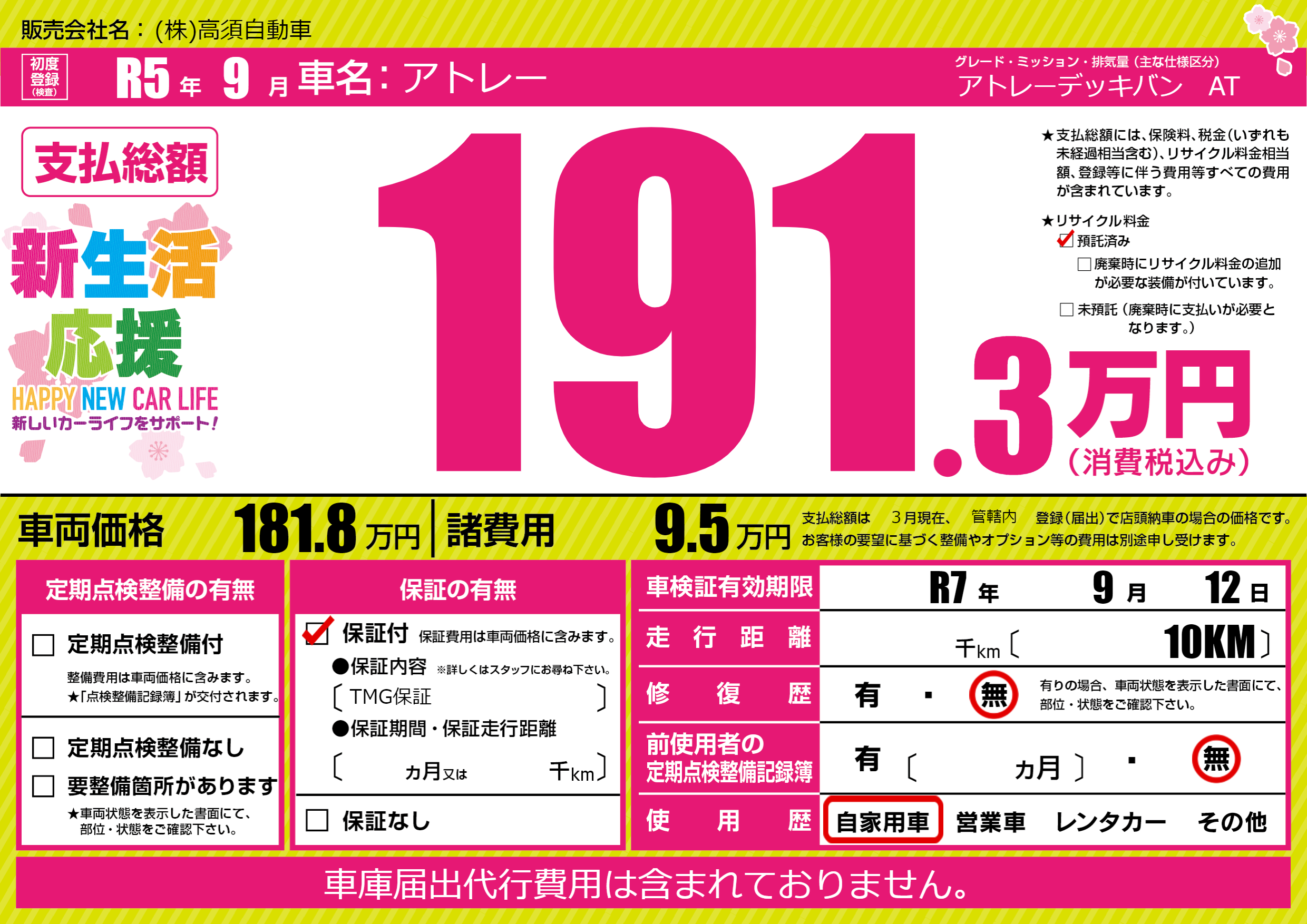 | 車検制限 | R7年 9月 12日 | ||