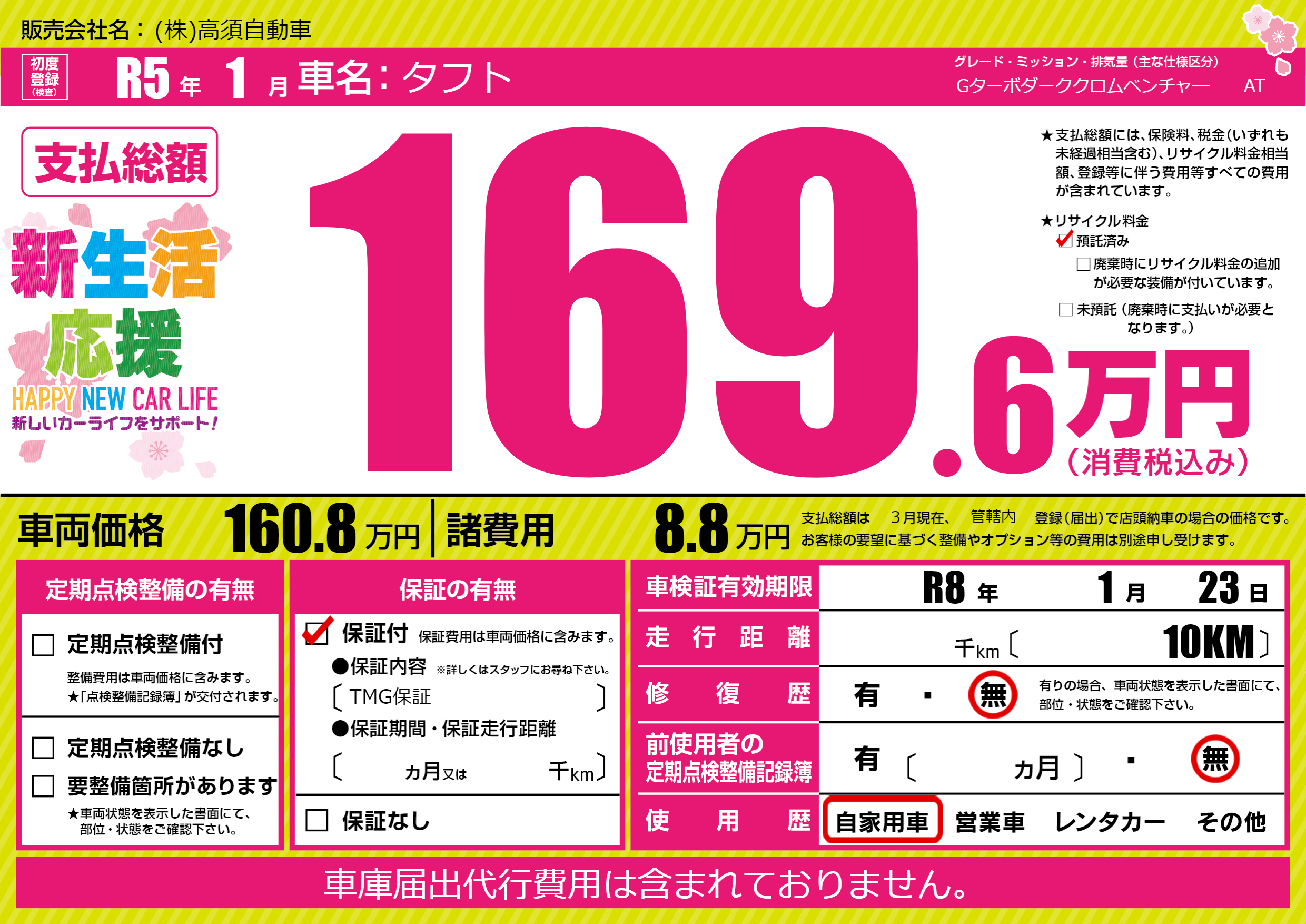 保証付き 保証内容(TMG保証) ---ヶ月または()千kmまで |