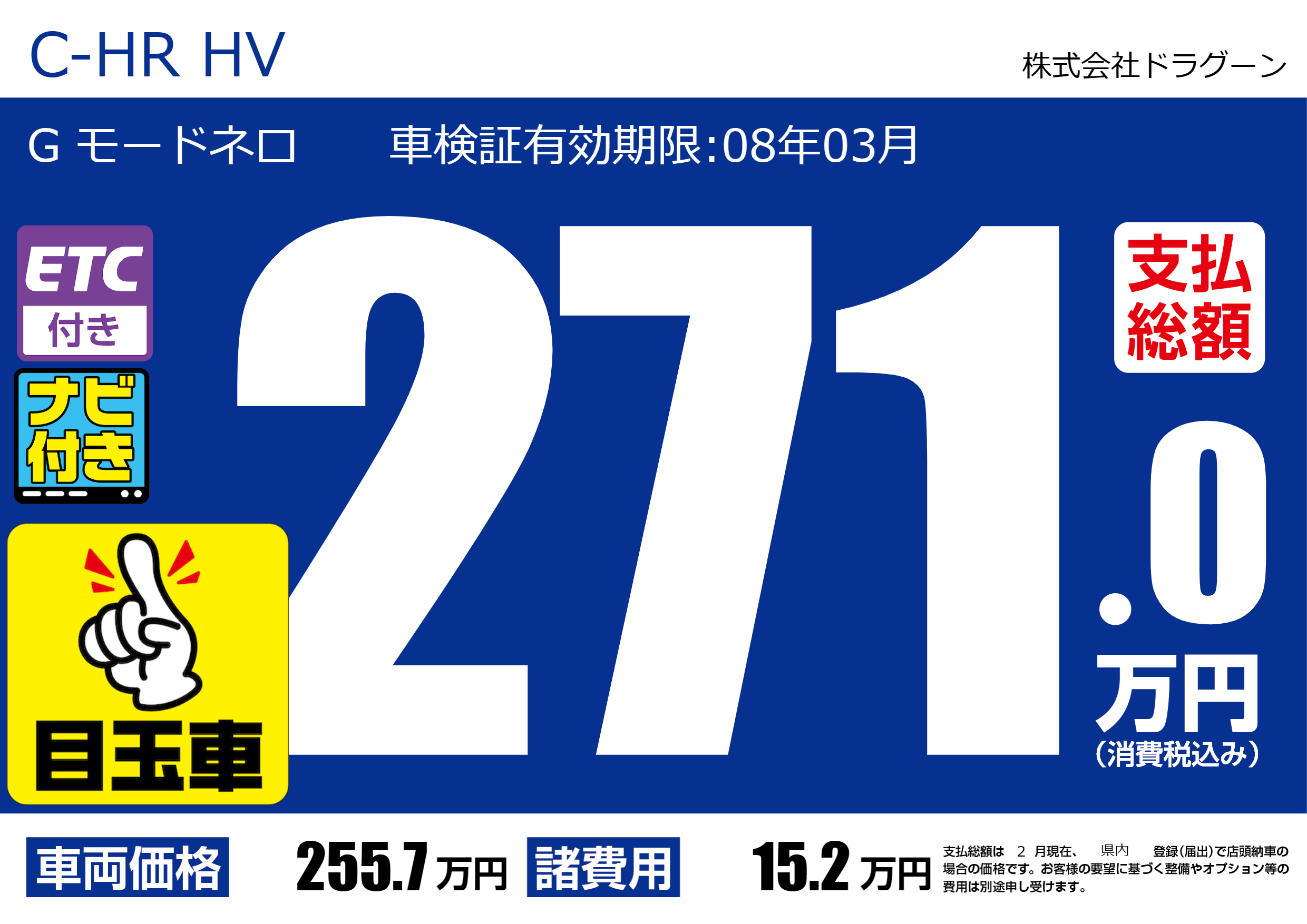 | 車名 | C-HR HV | グレード ミッション 排気量 |