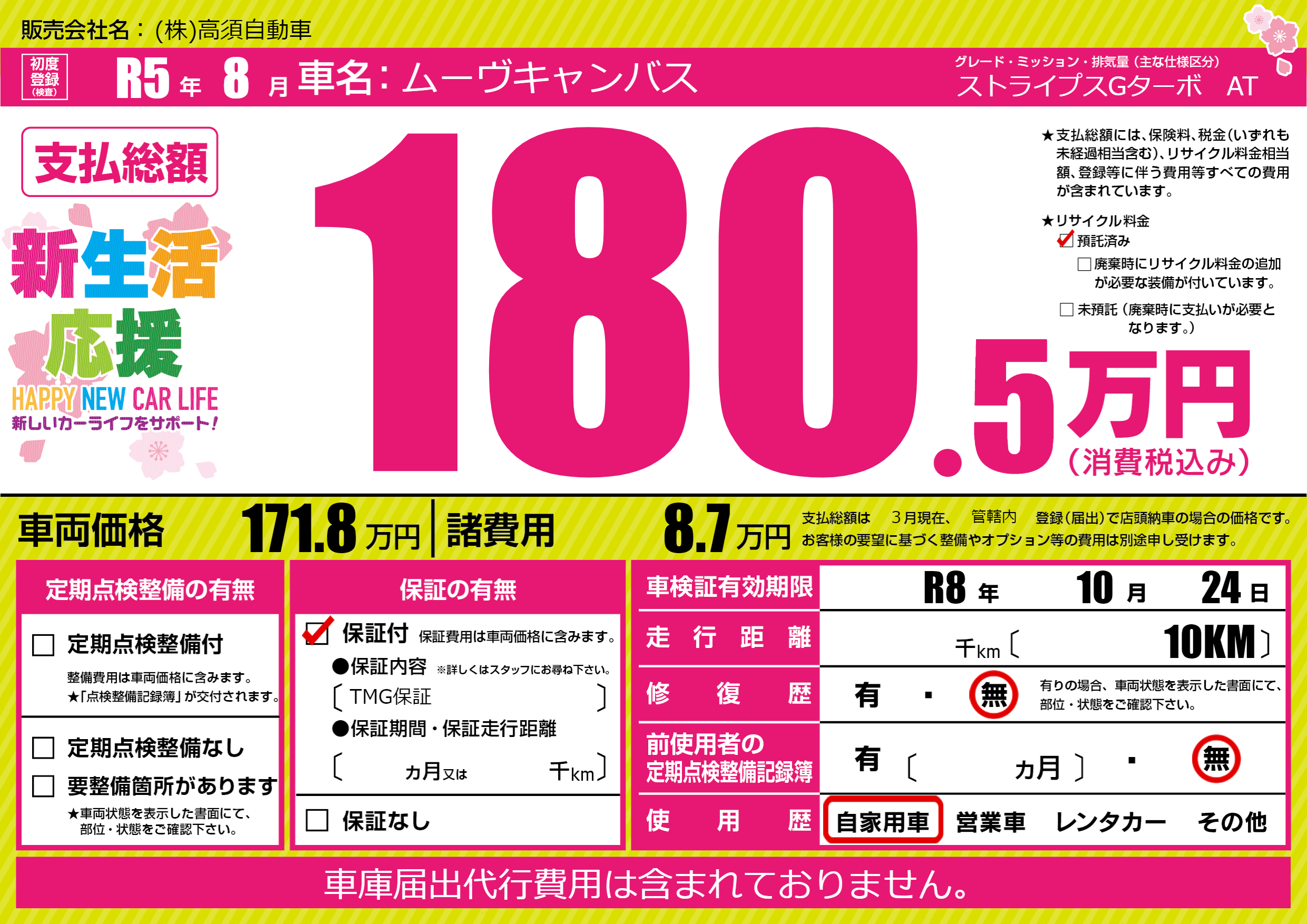なし | 車検制限 | R8年10月24月 |