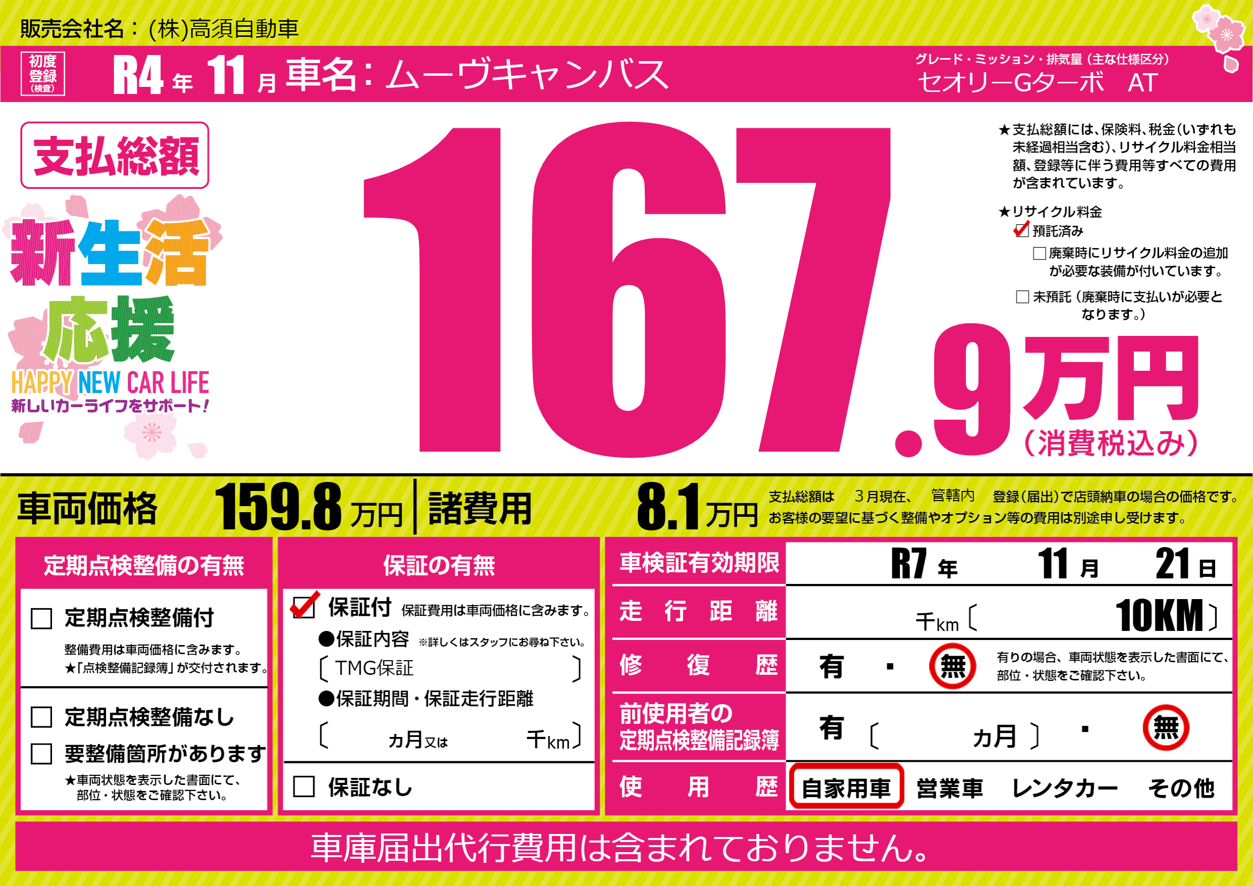 なし | 車検制限 | R7年11月21月 |