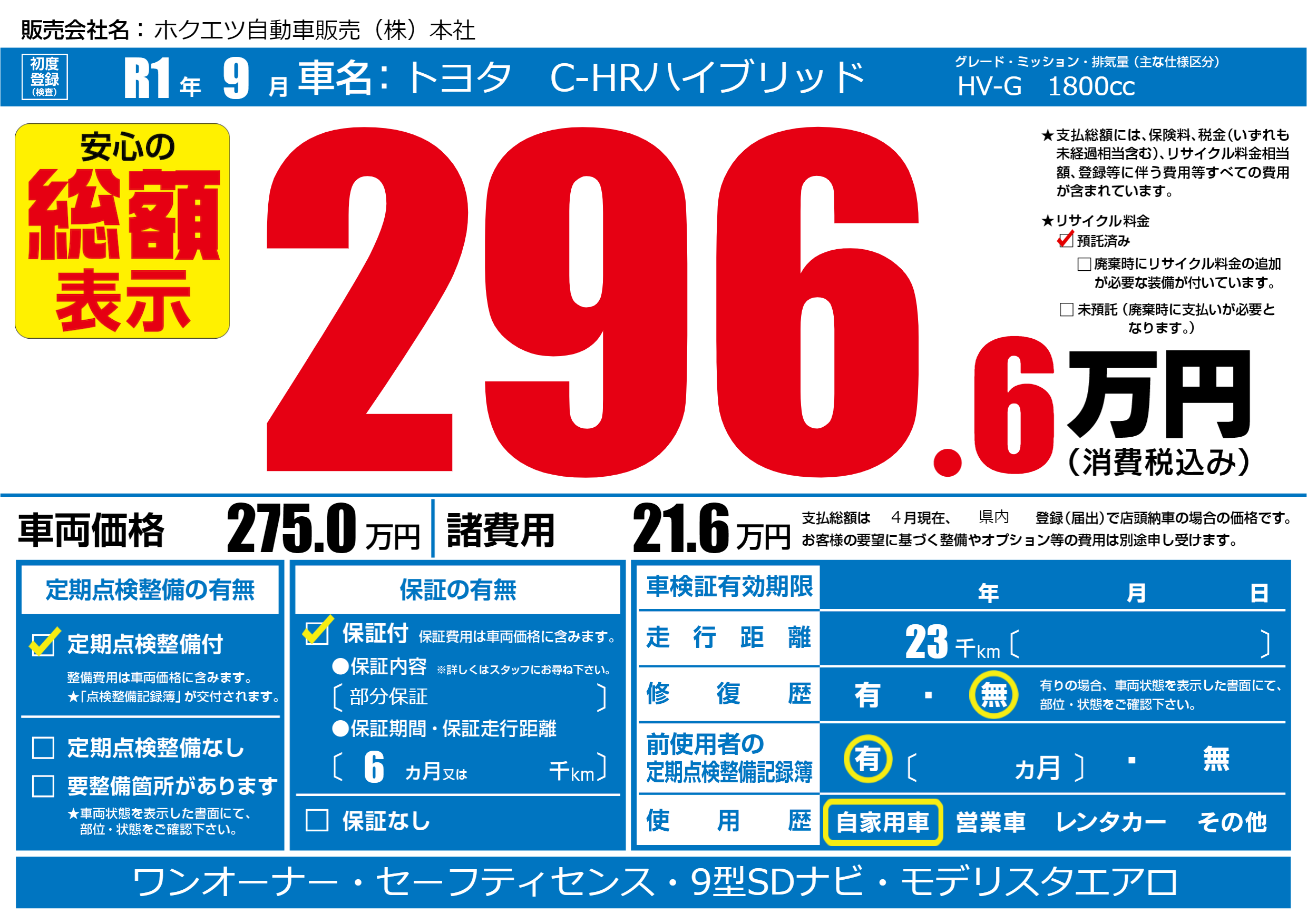 | 定期点検整備 | 定期点検整備あり | ||