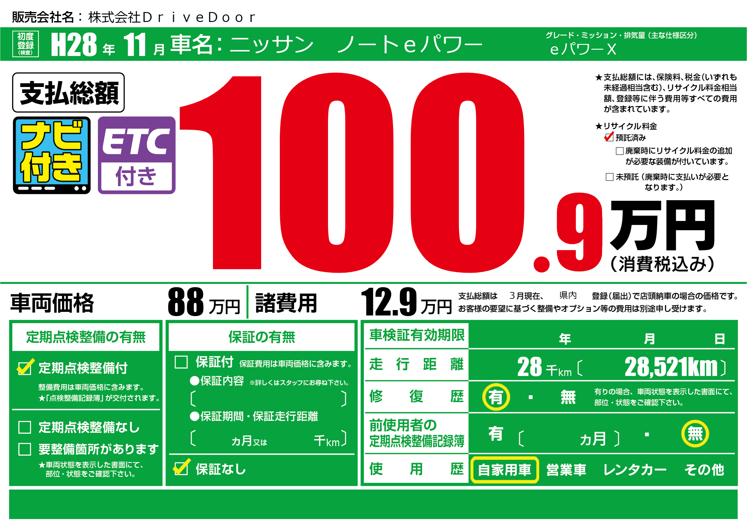 | 定期点検整備 | 定期点検整備あり | ||
