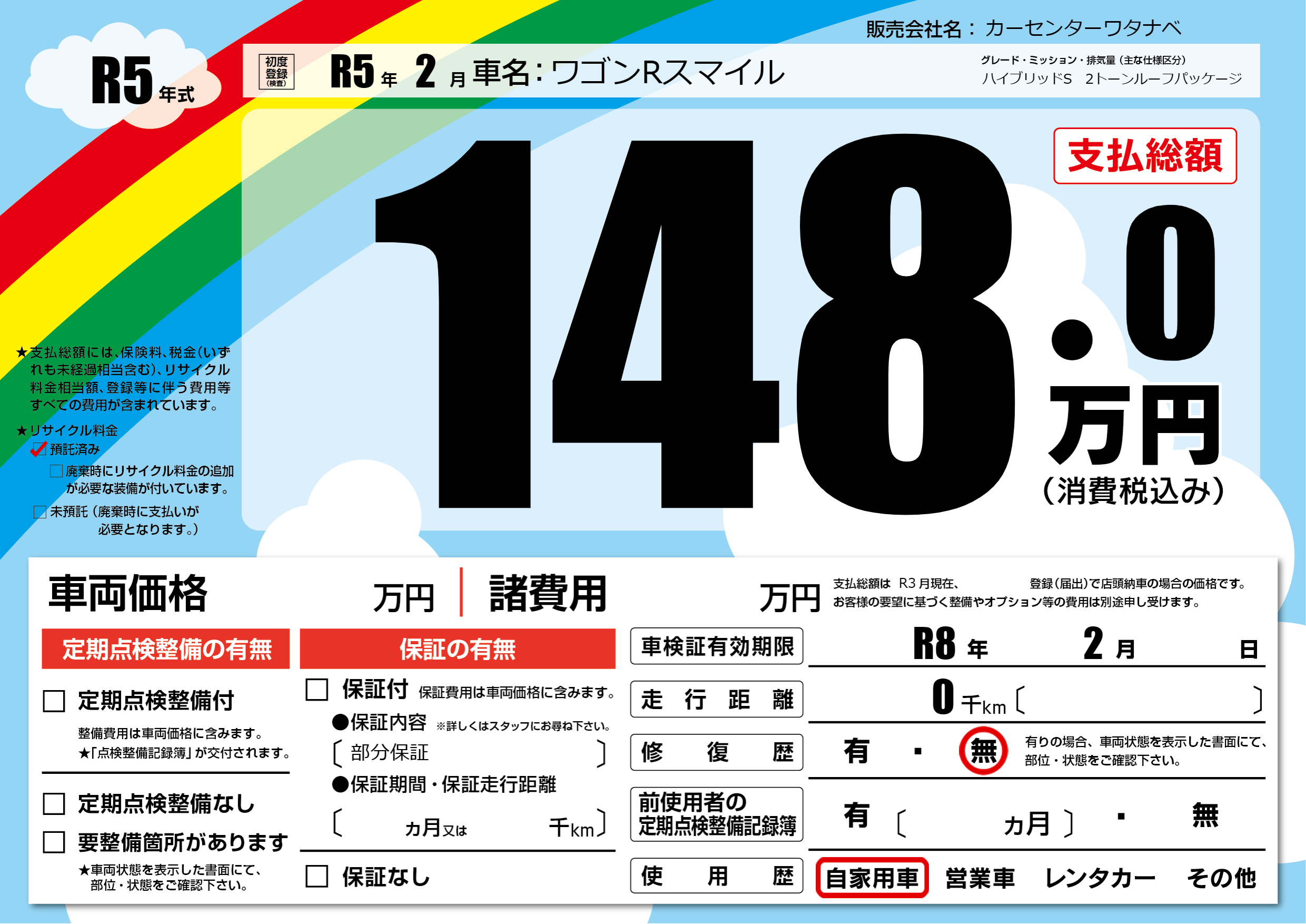 | 車名 | ワゴンRスマイル | グレード ミッション 排気量 |
