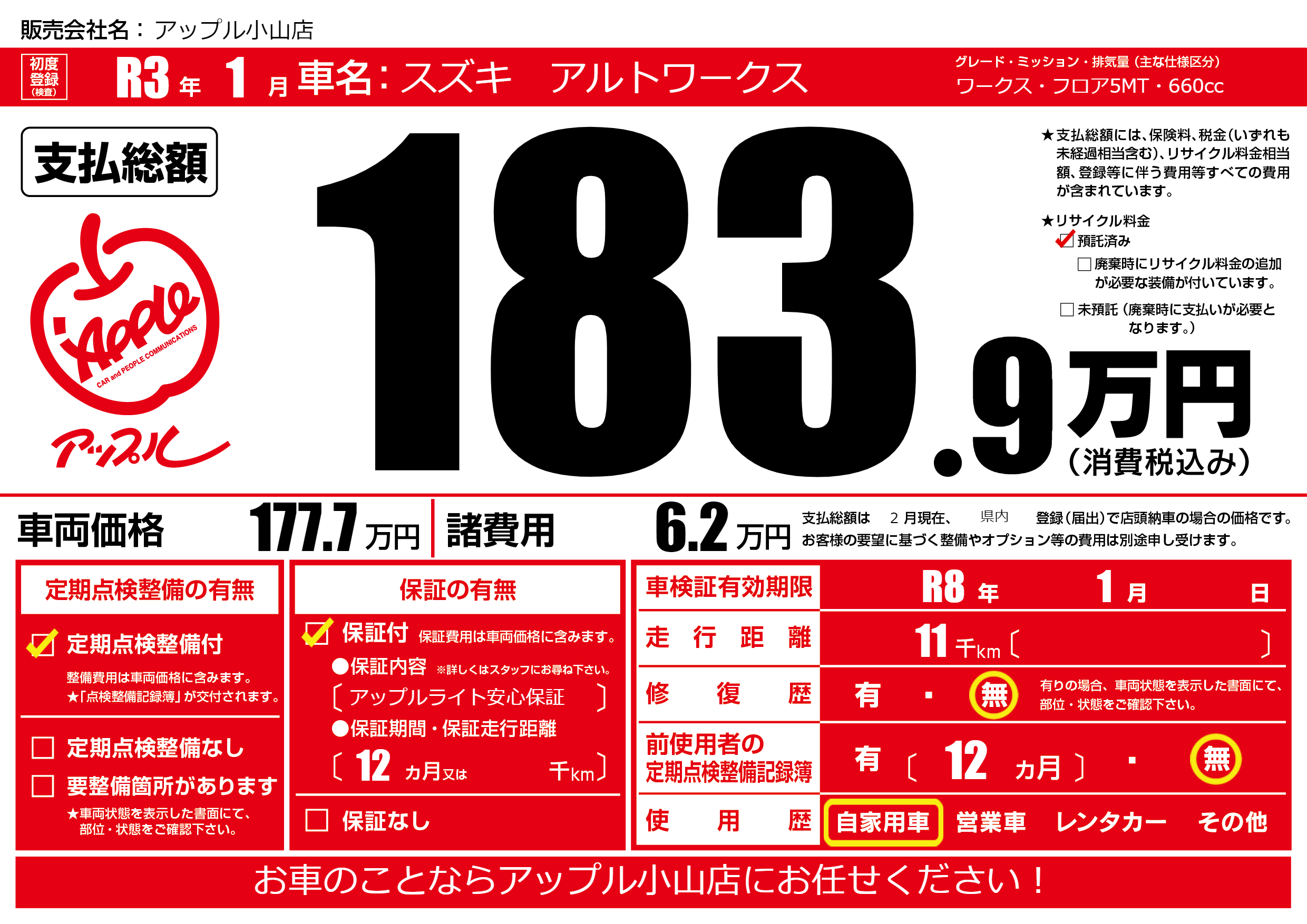 保証付き 保証内容(アップルライト安心保証) 12ヶ月または千km |