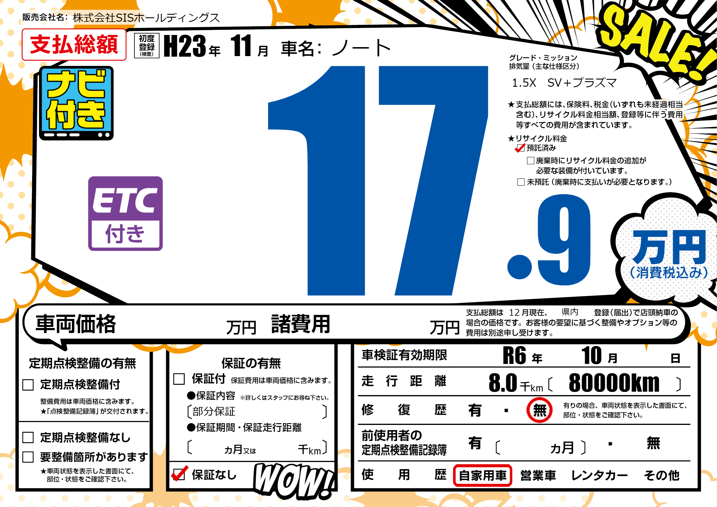 | 車検制限 | R6年 10月 - 日 | ||