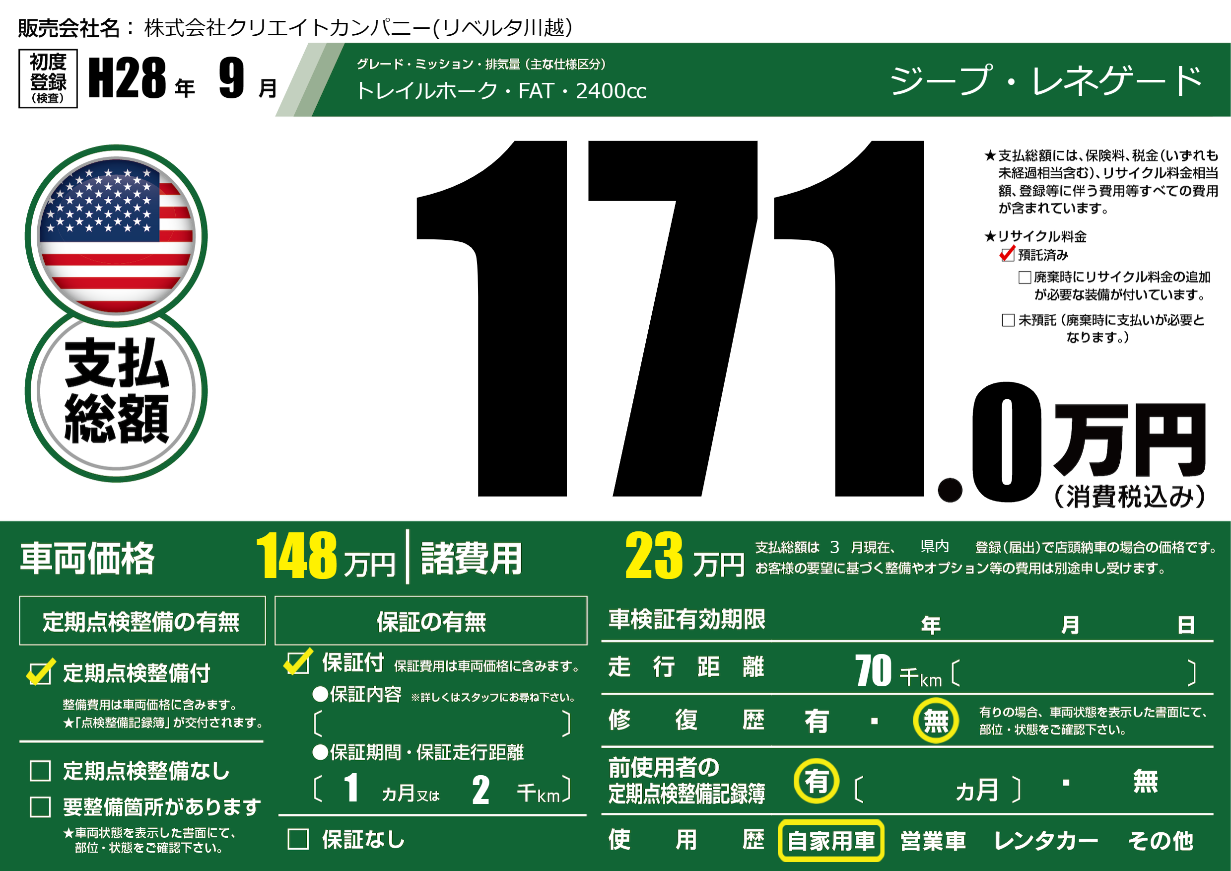 定期点検整備 | 定期点検整備あり |