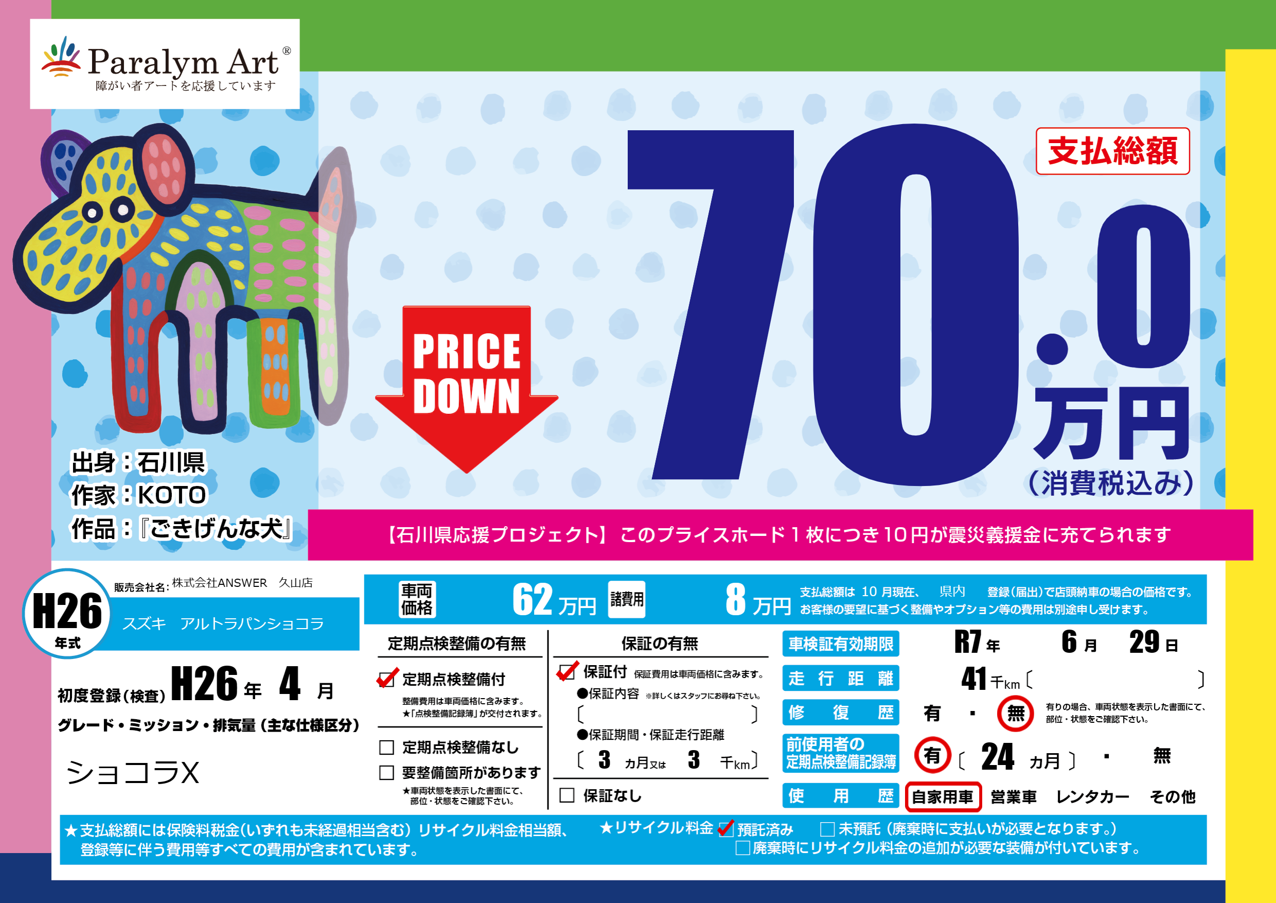 | 車検制限 | R7年 6月 29日 | ||