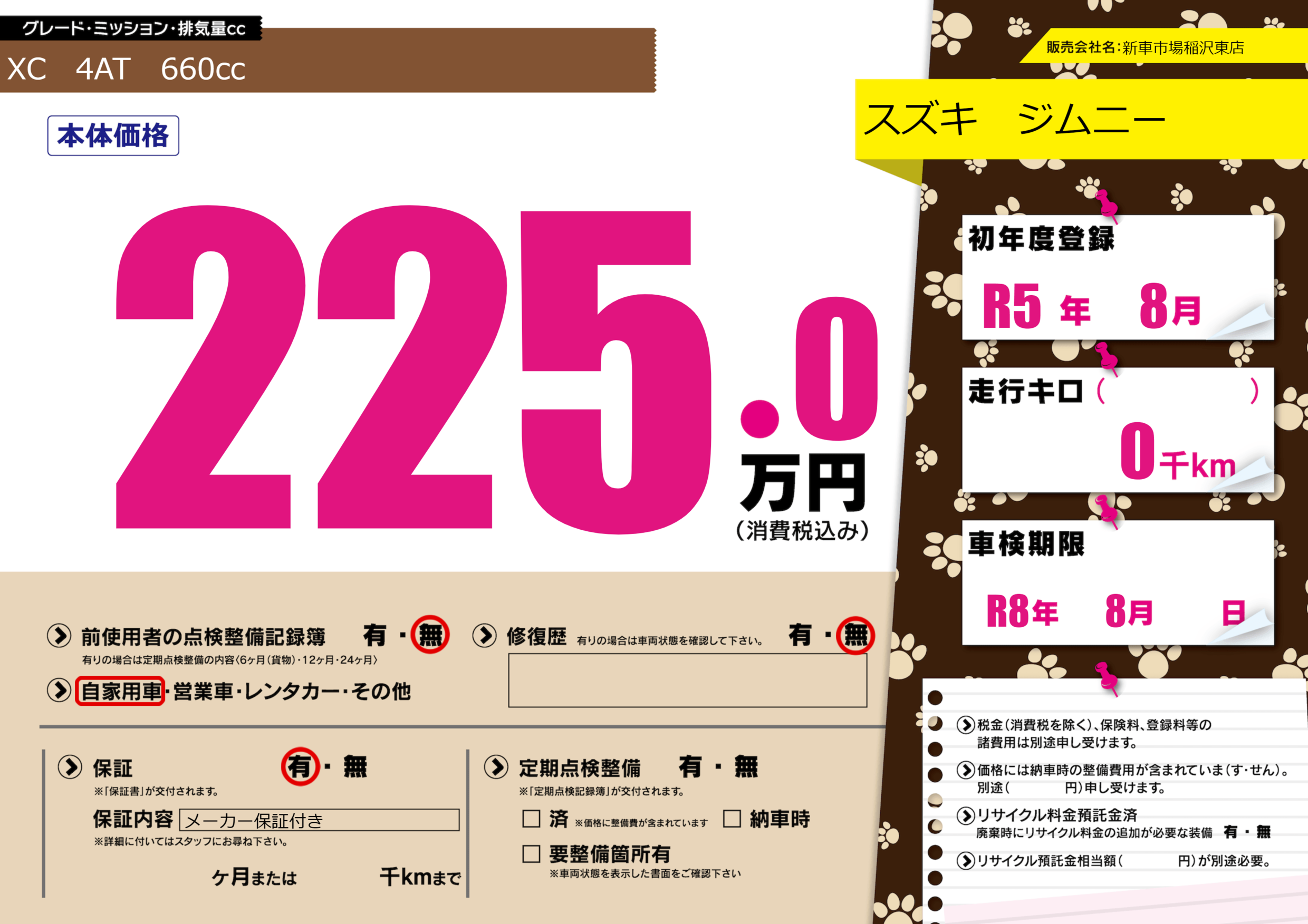 なし | 車検制限 | R8年8月---月 |