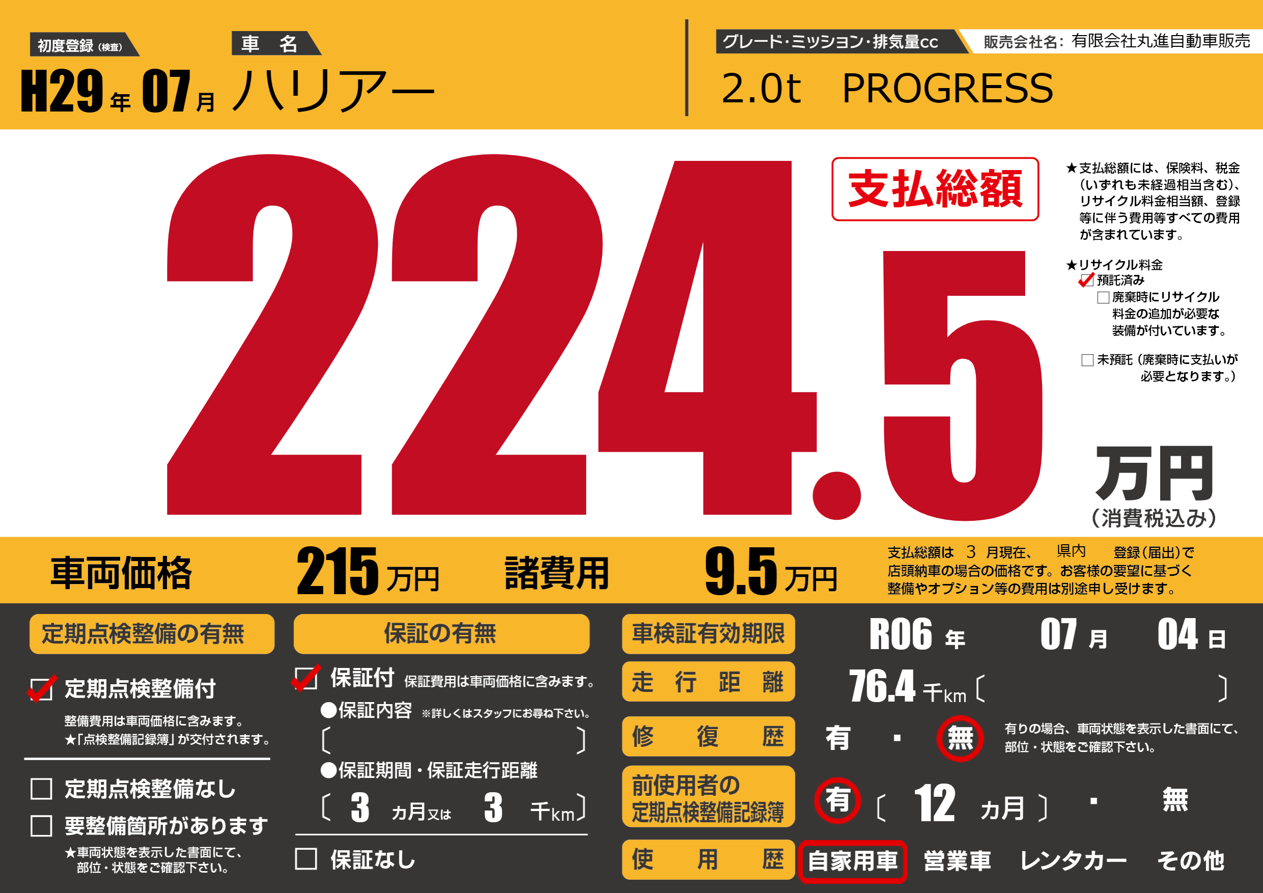 | 走行キロ | 7.6万km | ||