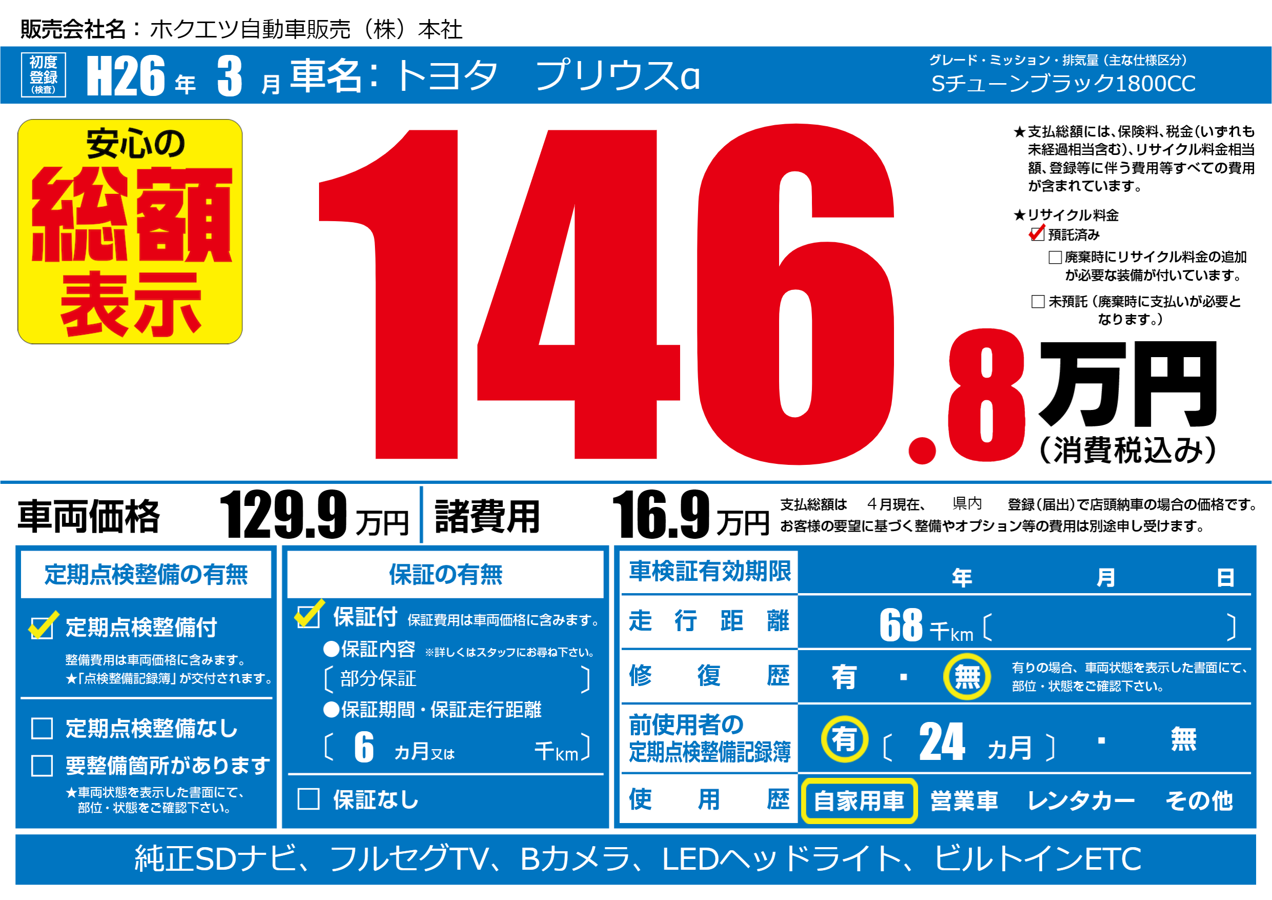 | 走行キロ | 6.8万km | ||