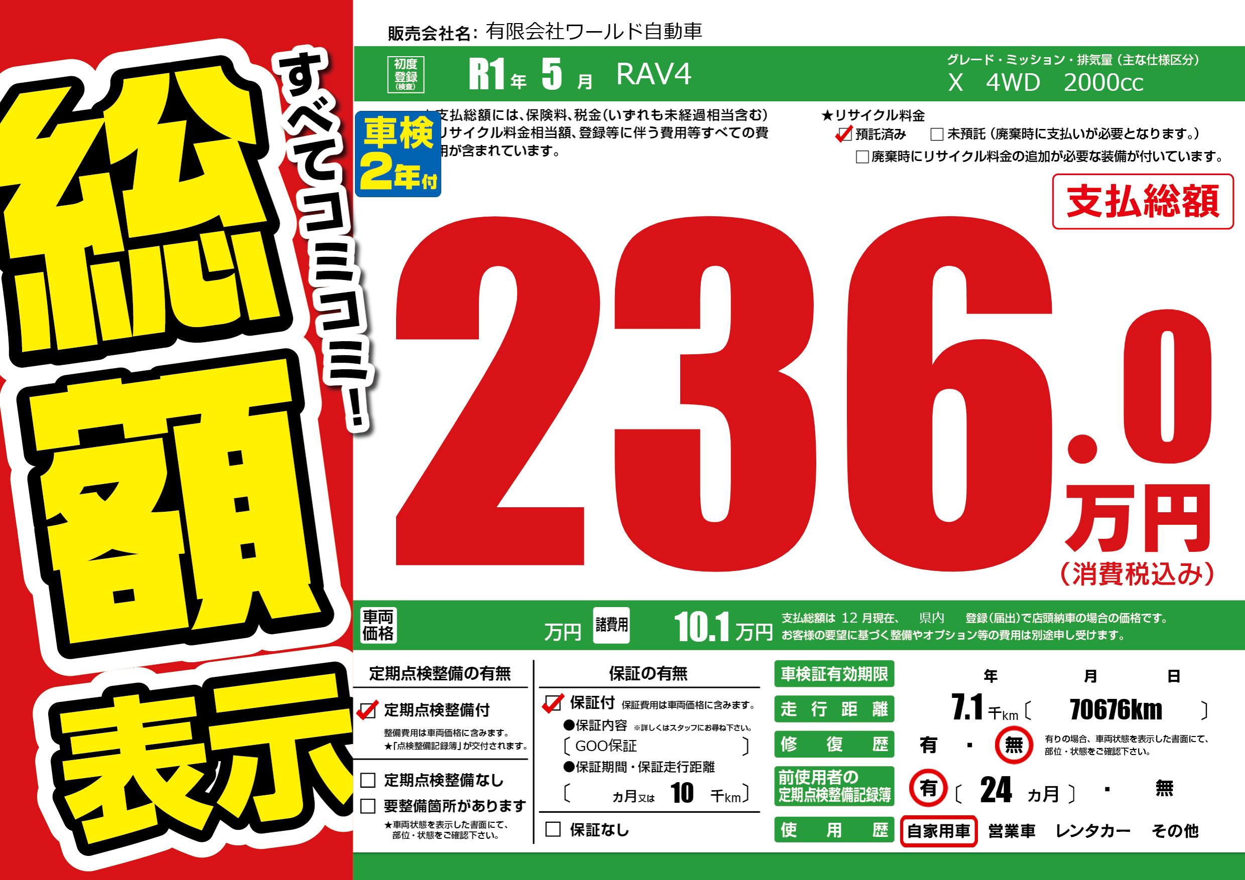 | 定期点検整備 | 定期点検整備あり | ||