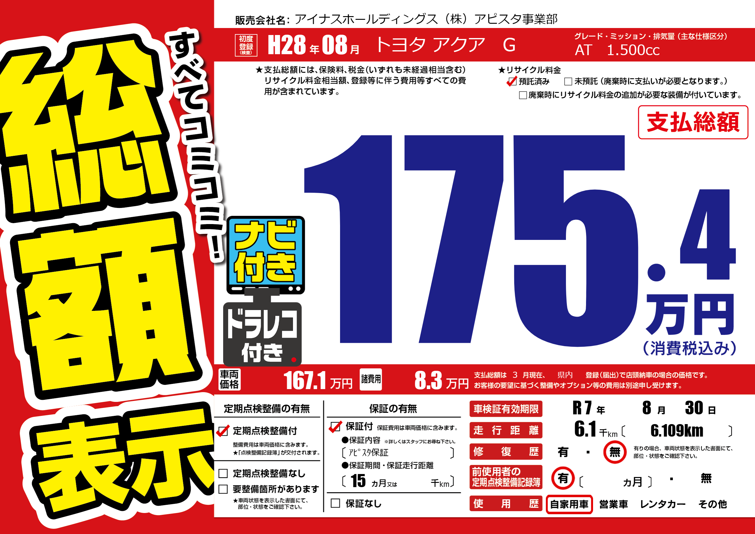 なし | 車検制限 | R 7年8月30月 |