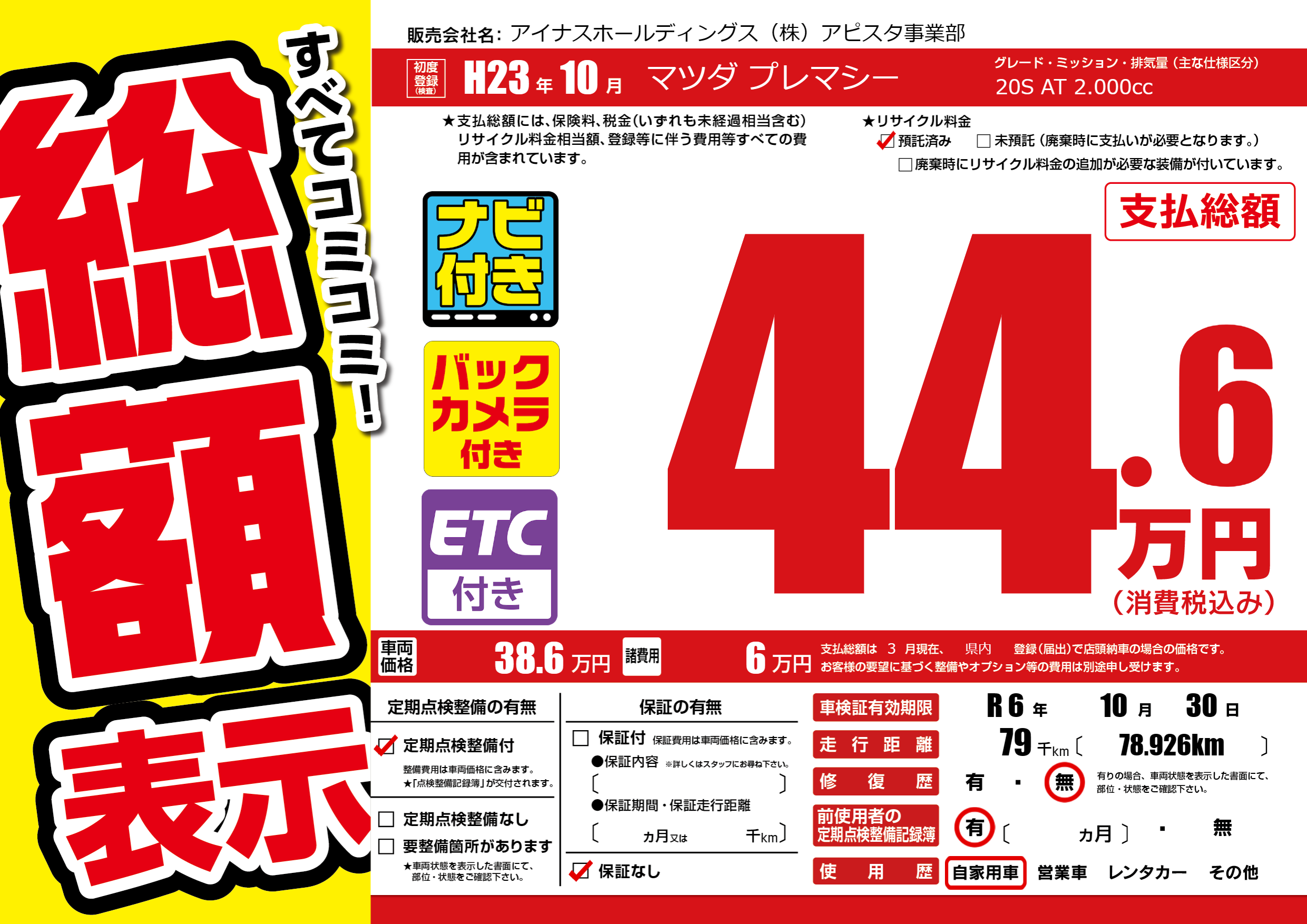 なし | 車検制限 | R 6年10月30月 |