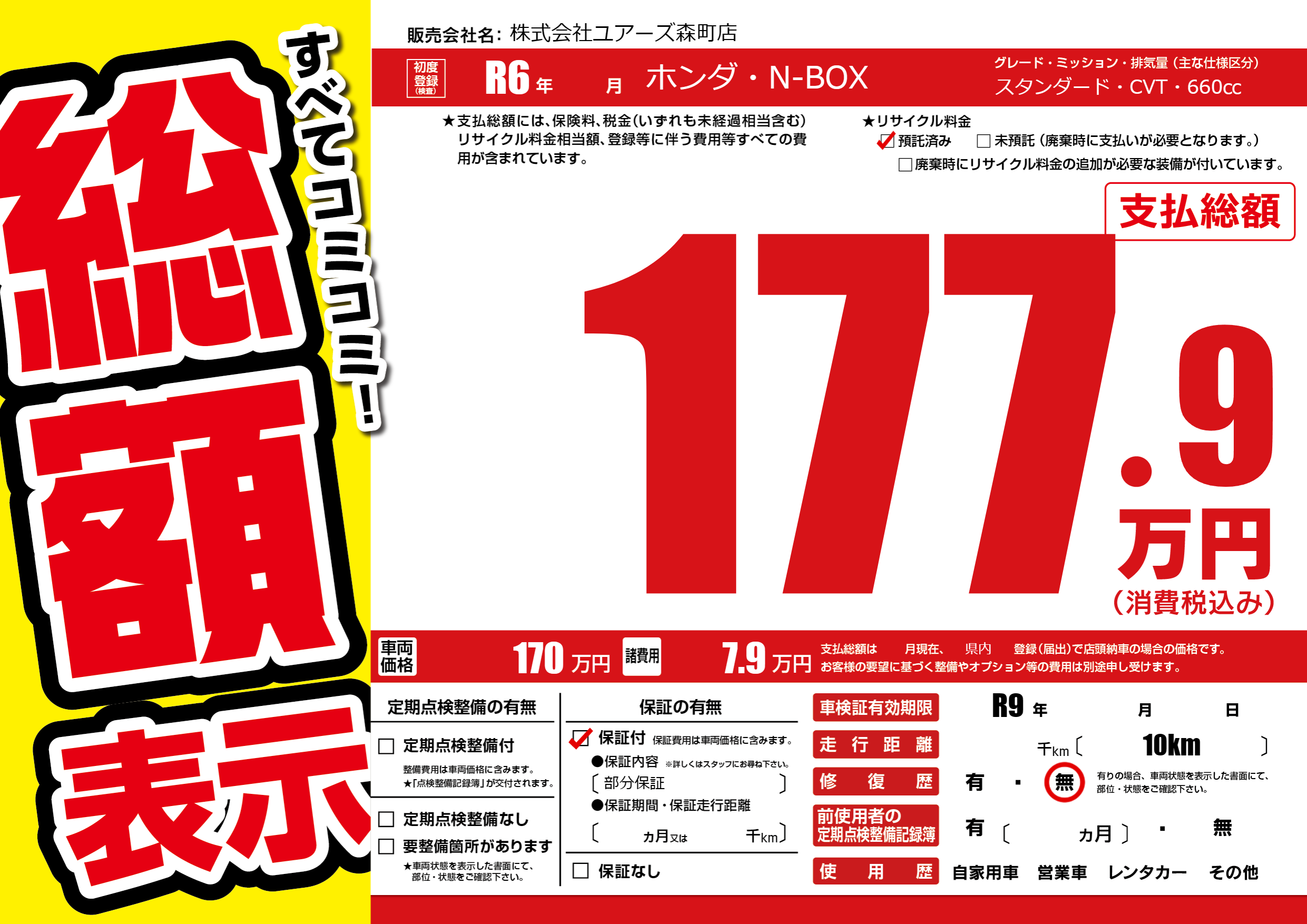 保証付き 保証内容(部分保証) ---ヶ月または()千kmまで |