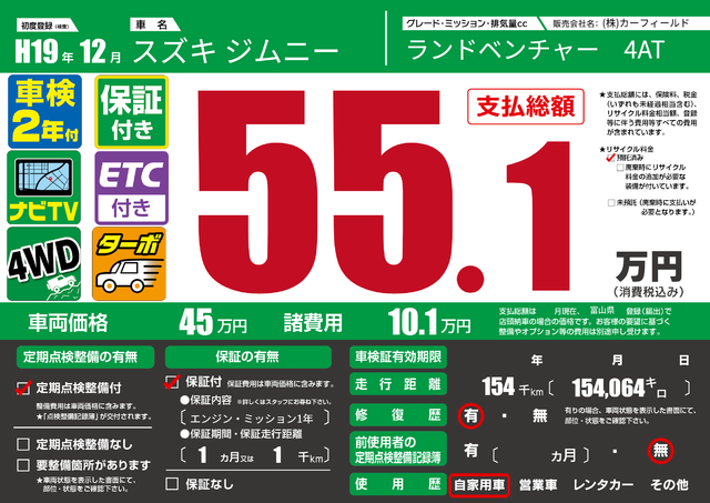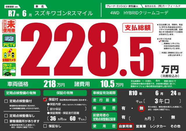 | 車検制限 | - 年 - 月 - 日 | ||