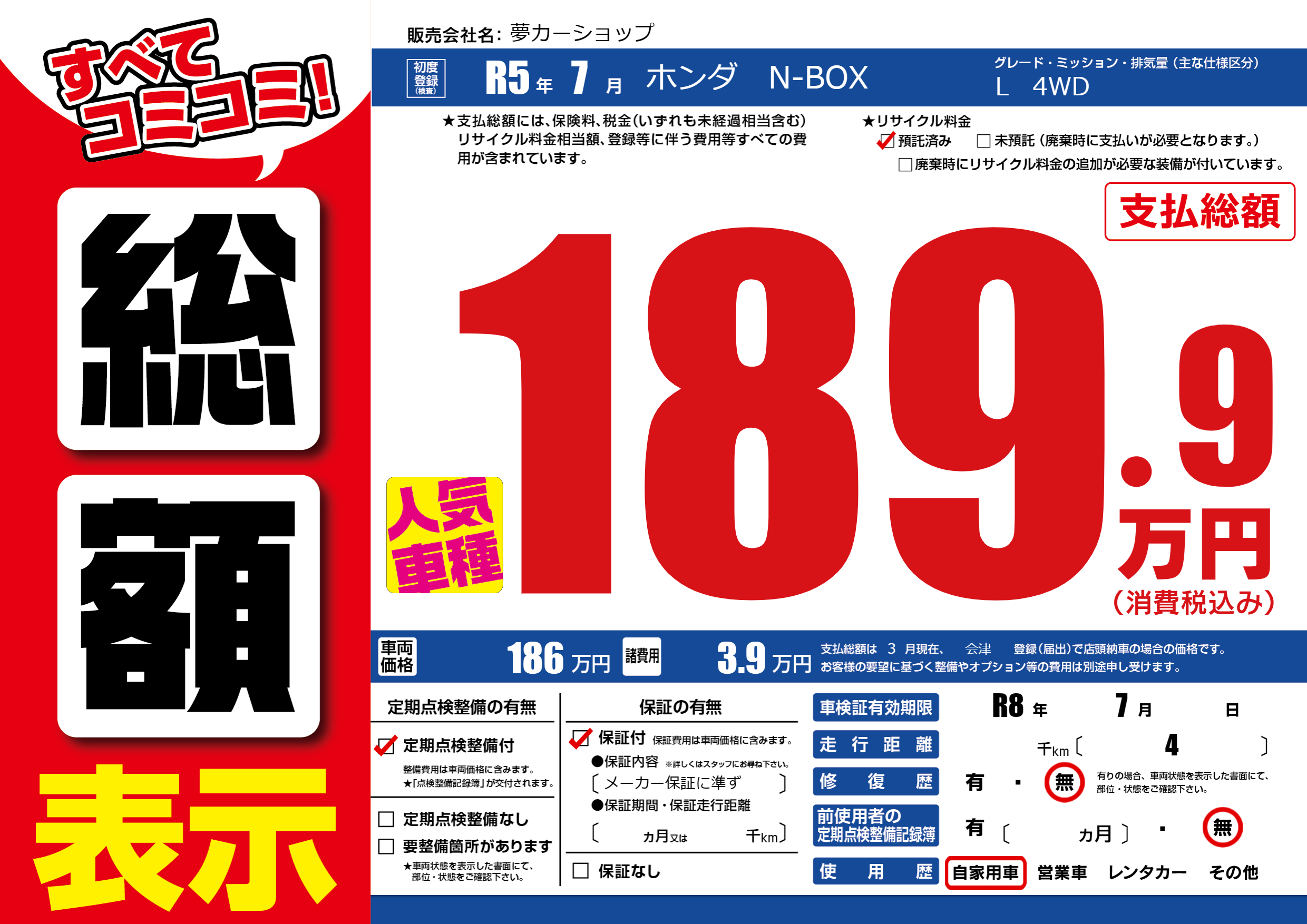 保証付き 保証内容(メーカー保証に準ず) ヶ月または千km |