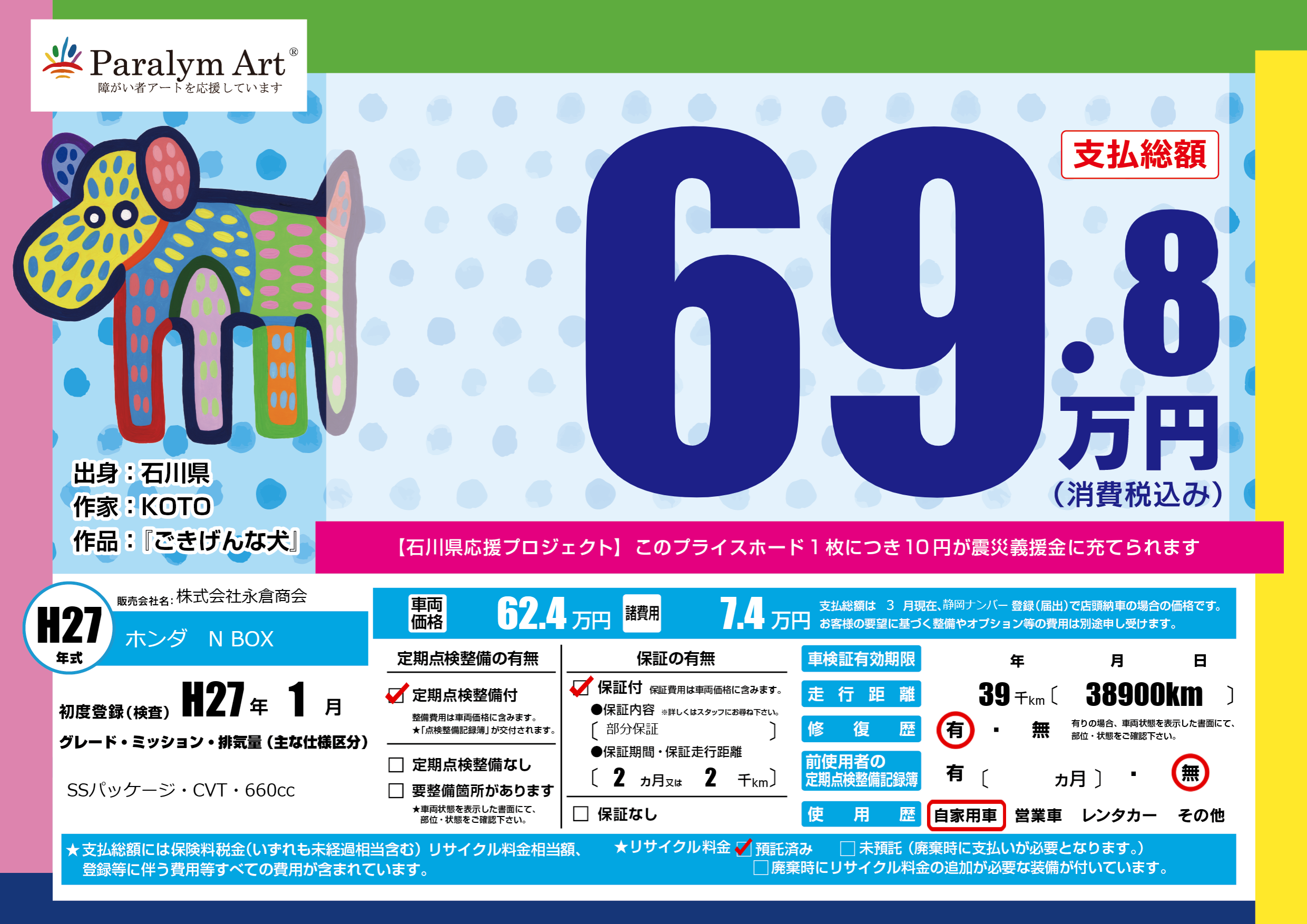 | 走行キロ | 3.9万km | 初年度登録 | H27年1月 |
