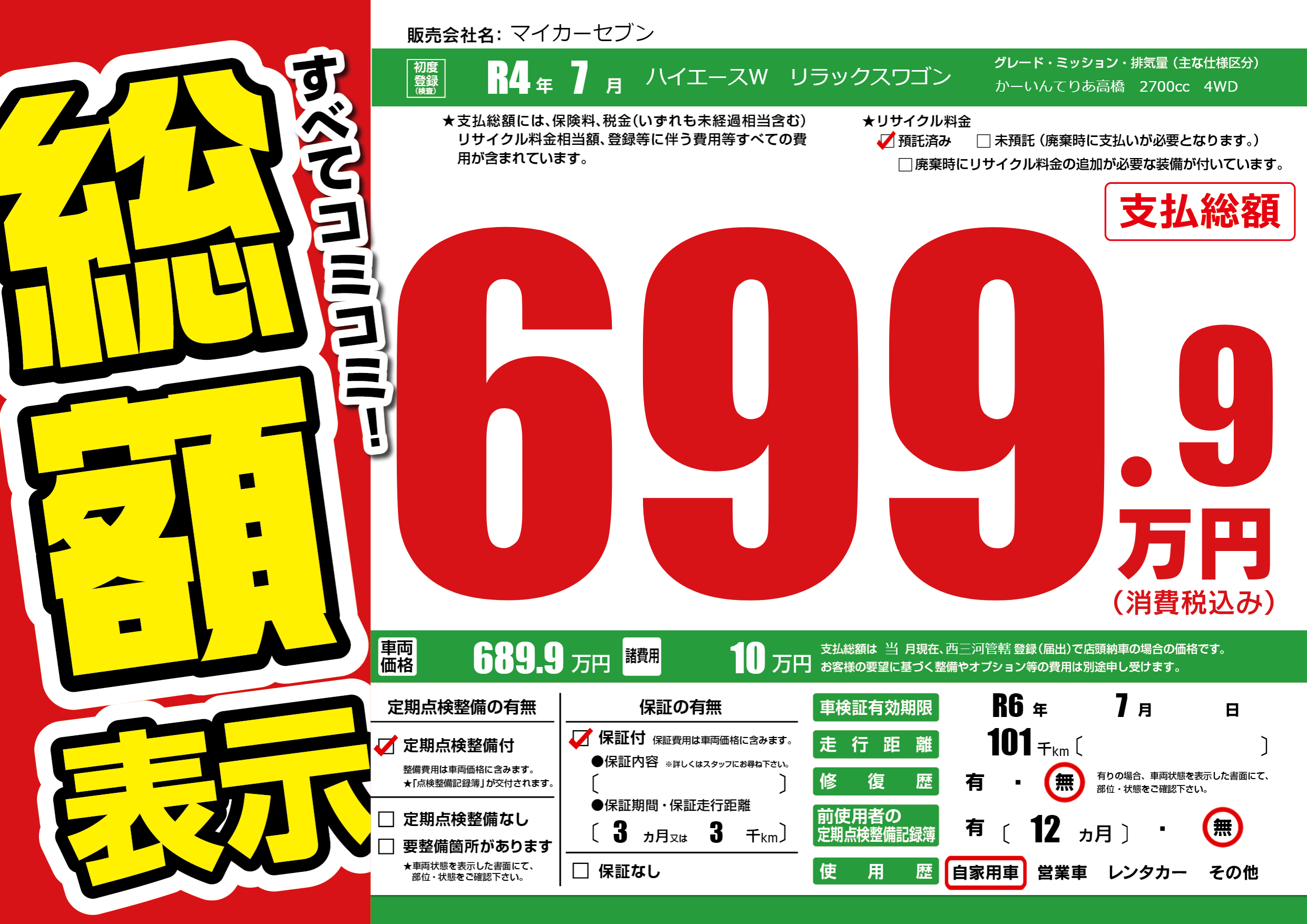 なし | 車検制限 | R6年7月---月 |