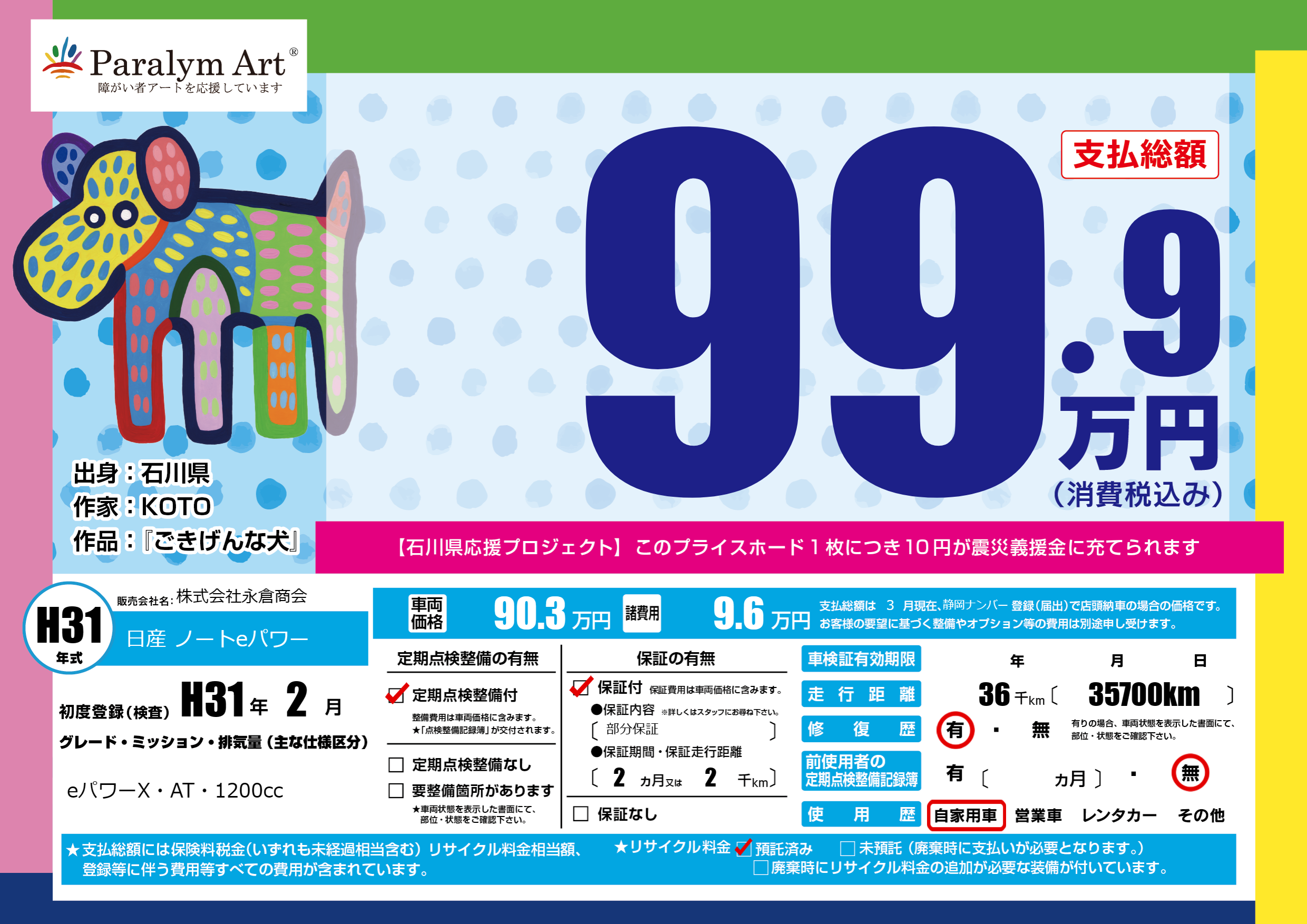 | 車名 | 日産 ノートeパワー | グレード ミッション 排気量 |