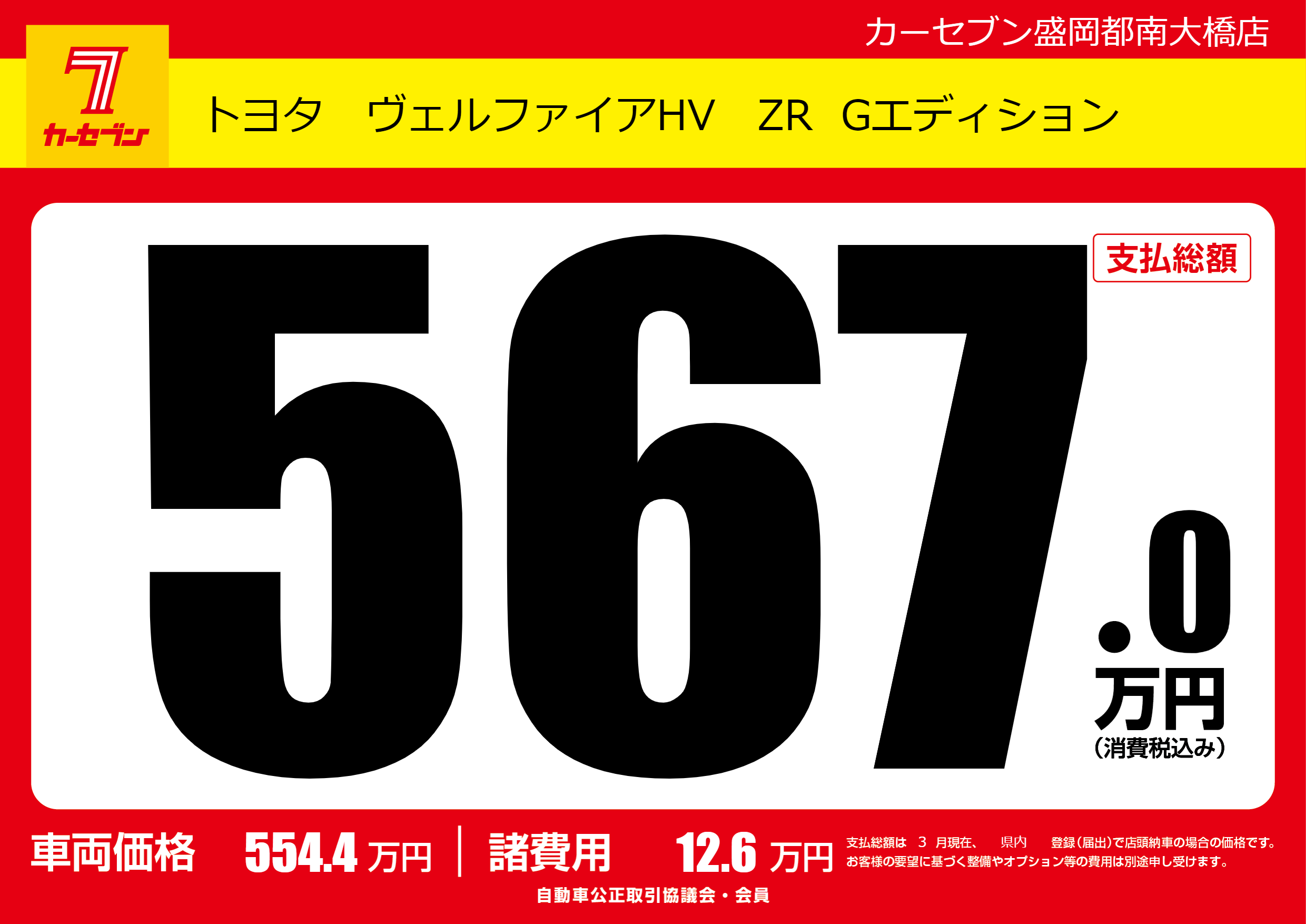 | 車名 | トヨタ ヴェルファイアHV ZR Gエディション | グレード ミッション 排気量 |