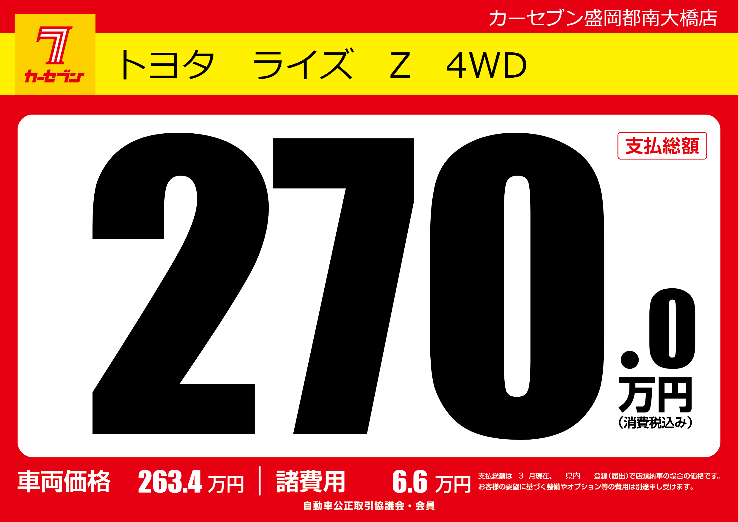| 車名 | トヨタ ライズ Z 4WD | グレード ミッション 排気量 |