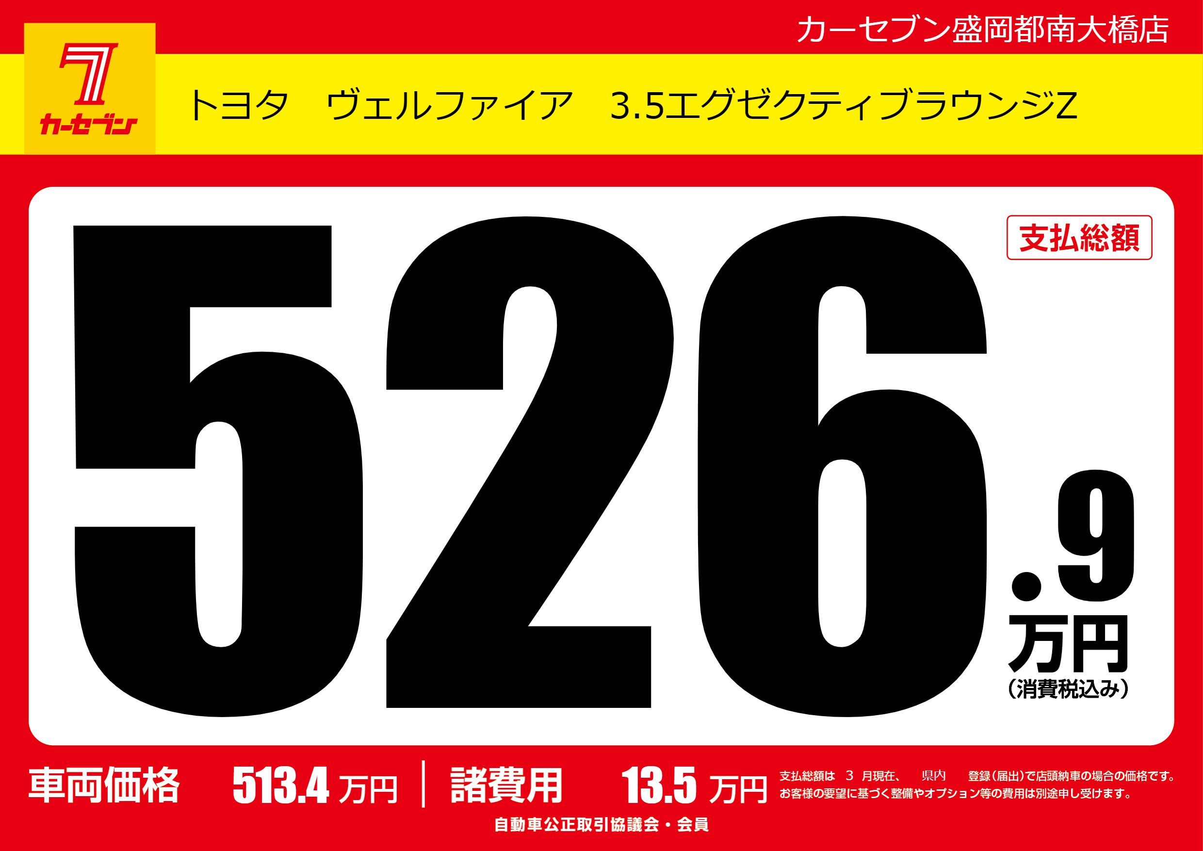| 車名 | トヨタ ヴェルファイア 3.5エグゼクティブラウンジZ | グレード ミッション 排気量 |