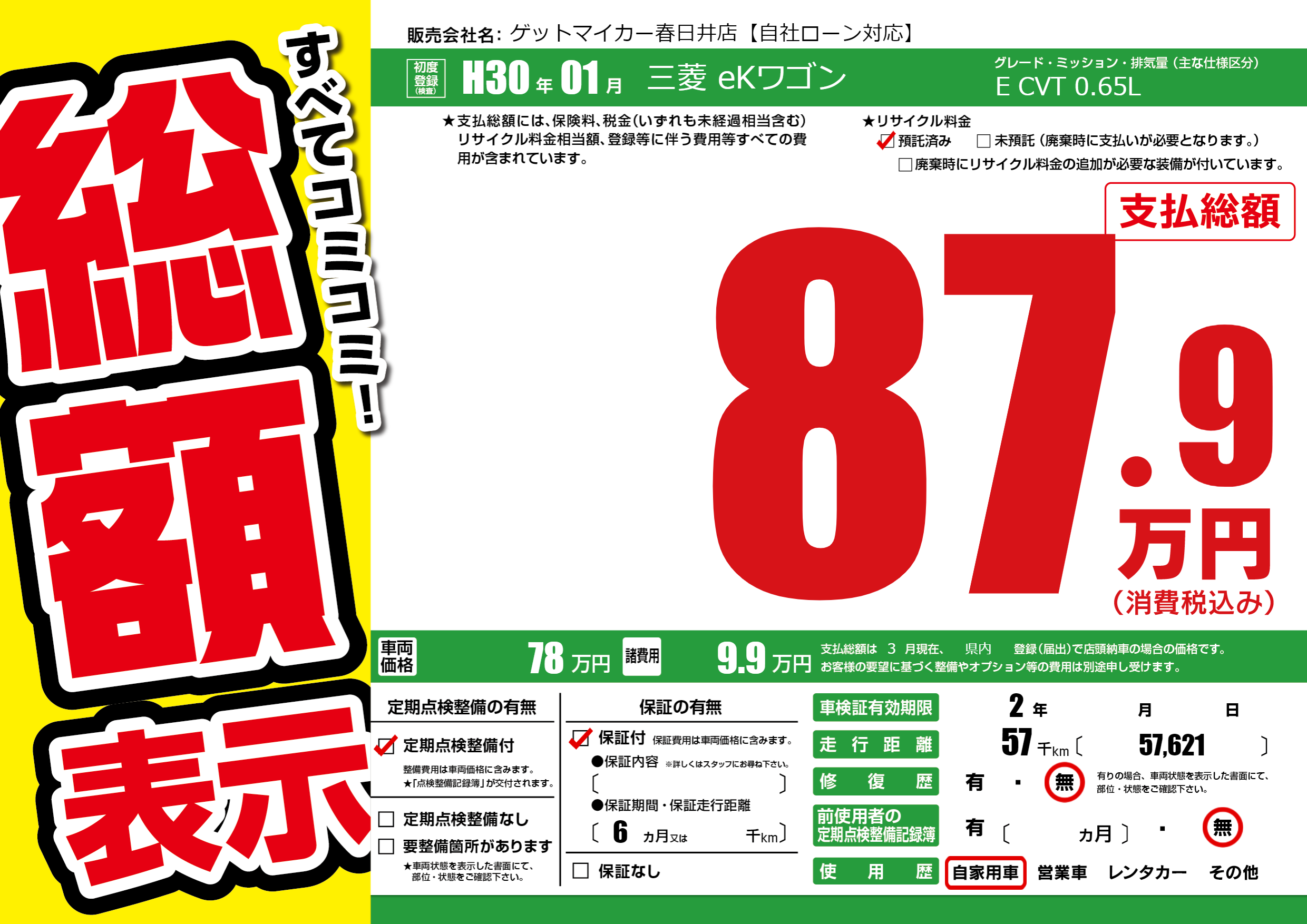 なし | 車検制限 | 2年---月---月 |