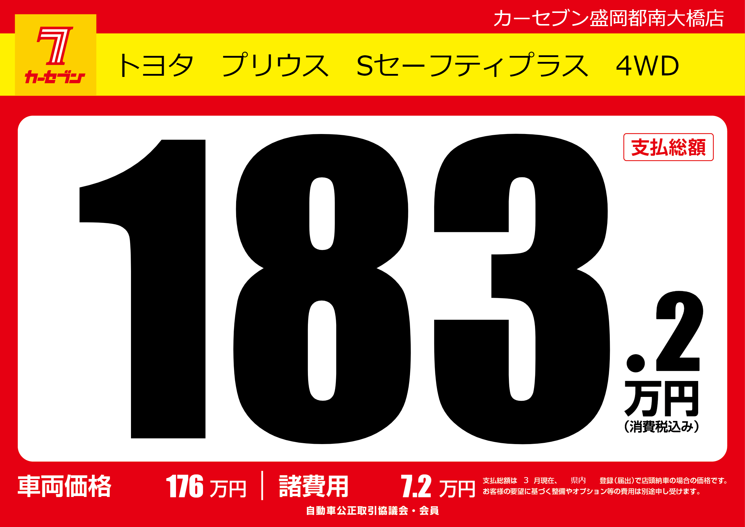 | 車名 | トヨタ プリウス Sセーフティプラス 4WD | グレード ミッション 排気量 |