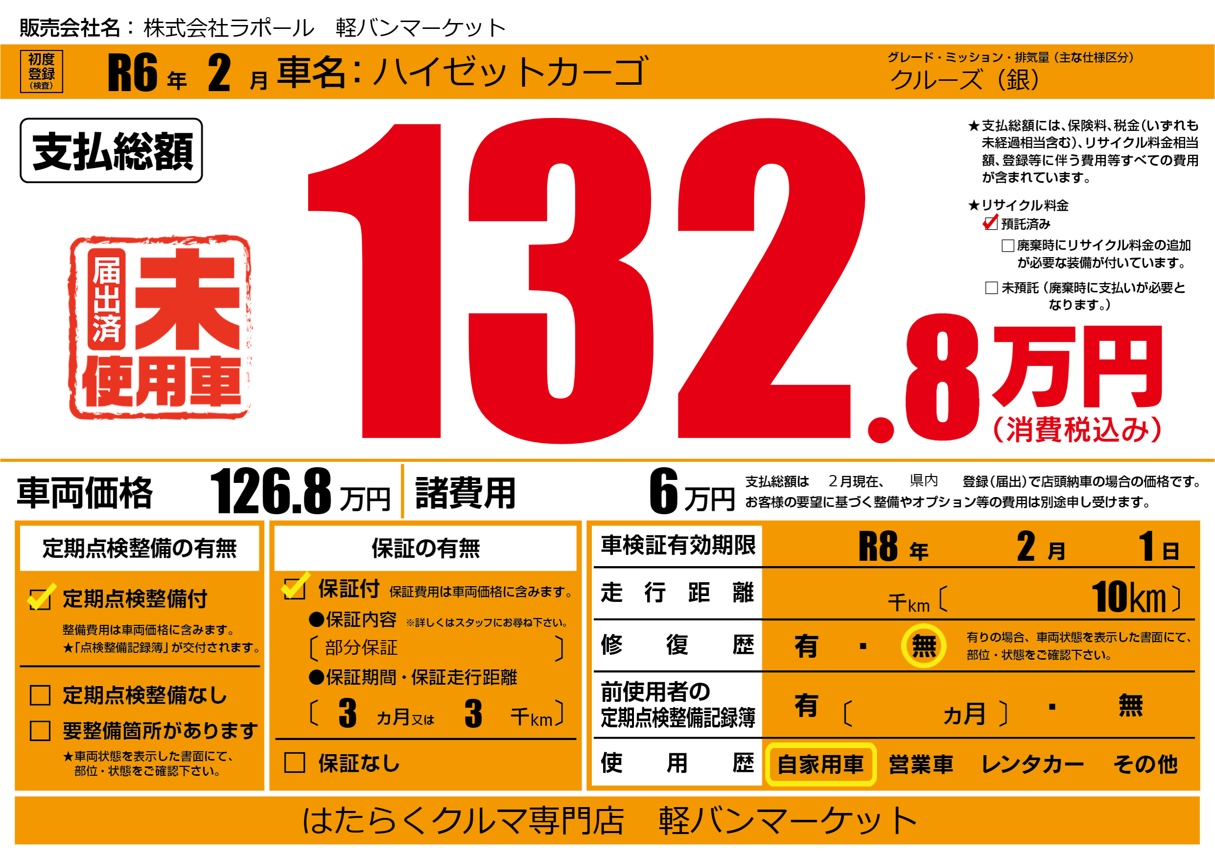 | 車検制限 | R8年 2月 1日 | ||