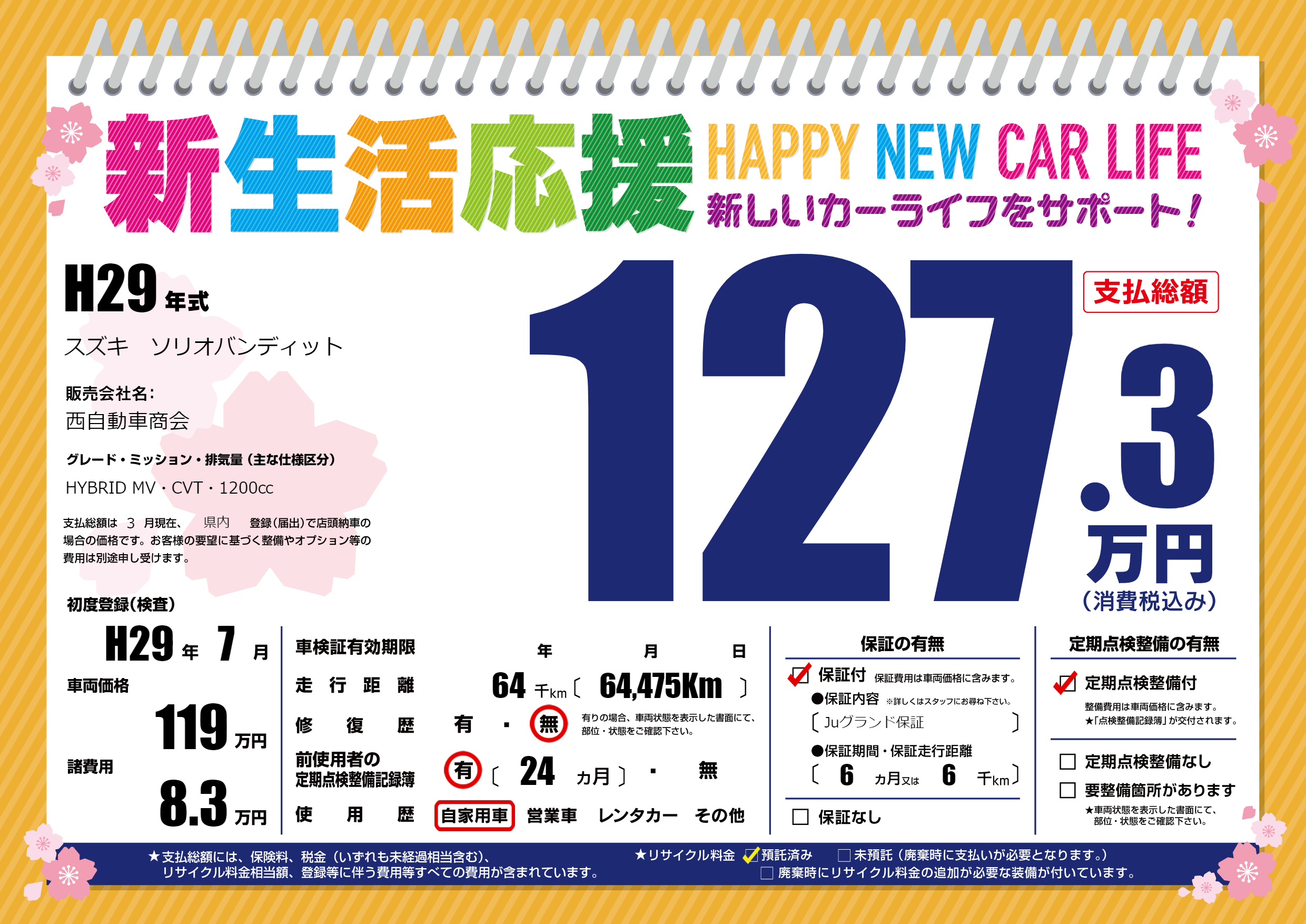 | 車名 | スズキ ソリオバンディット | グレード ミッション 排気量 |