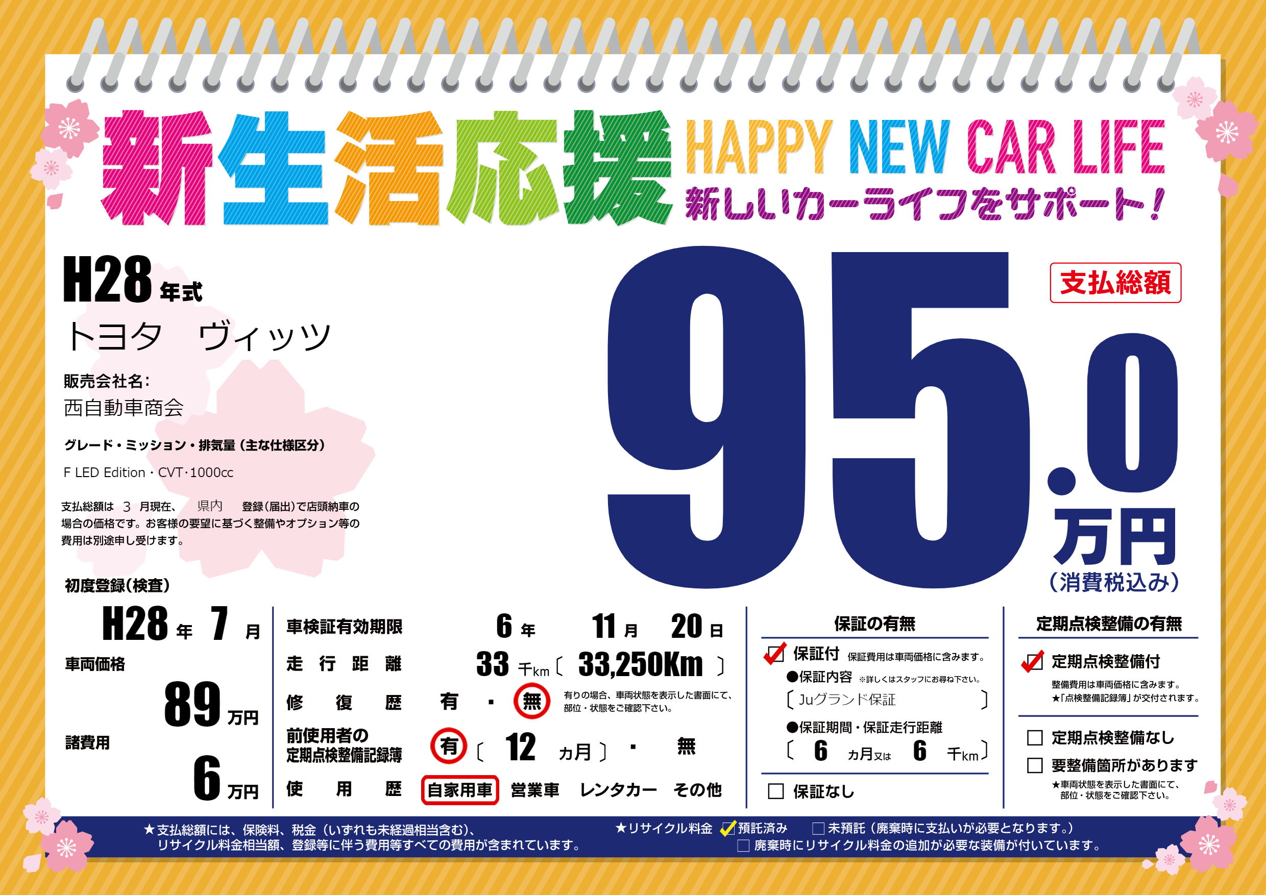 | 車名 | トヨタ ヴィッツ | グレード ミッション 排気量 |