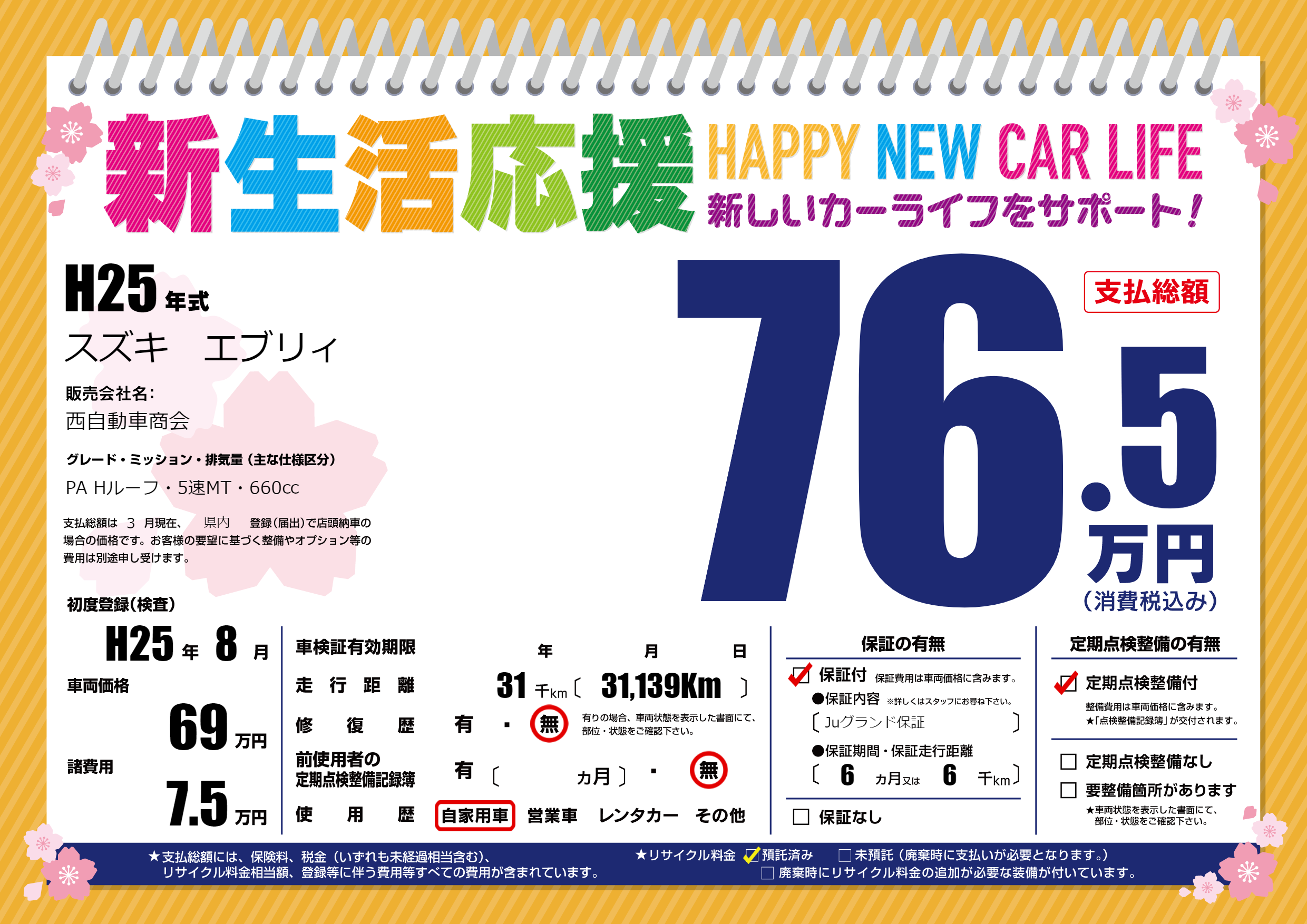 | 車名 | スズキ エブリィ | グレード ミッション 排気量 |