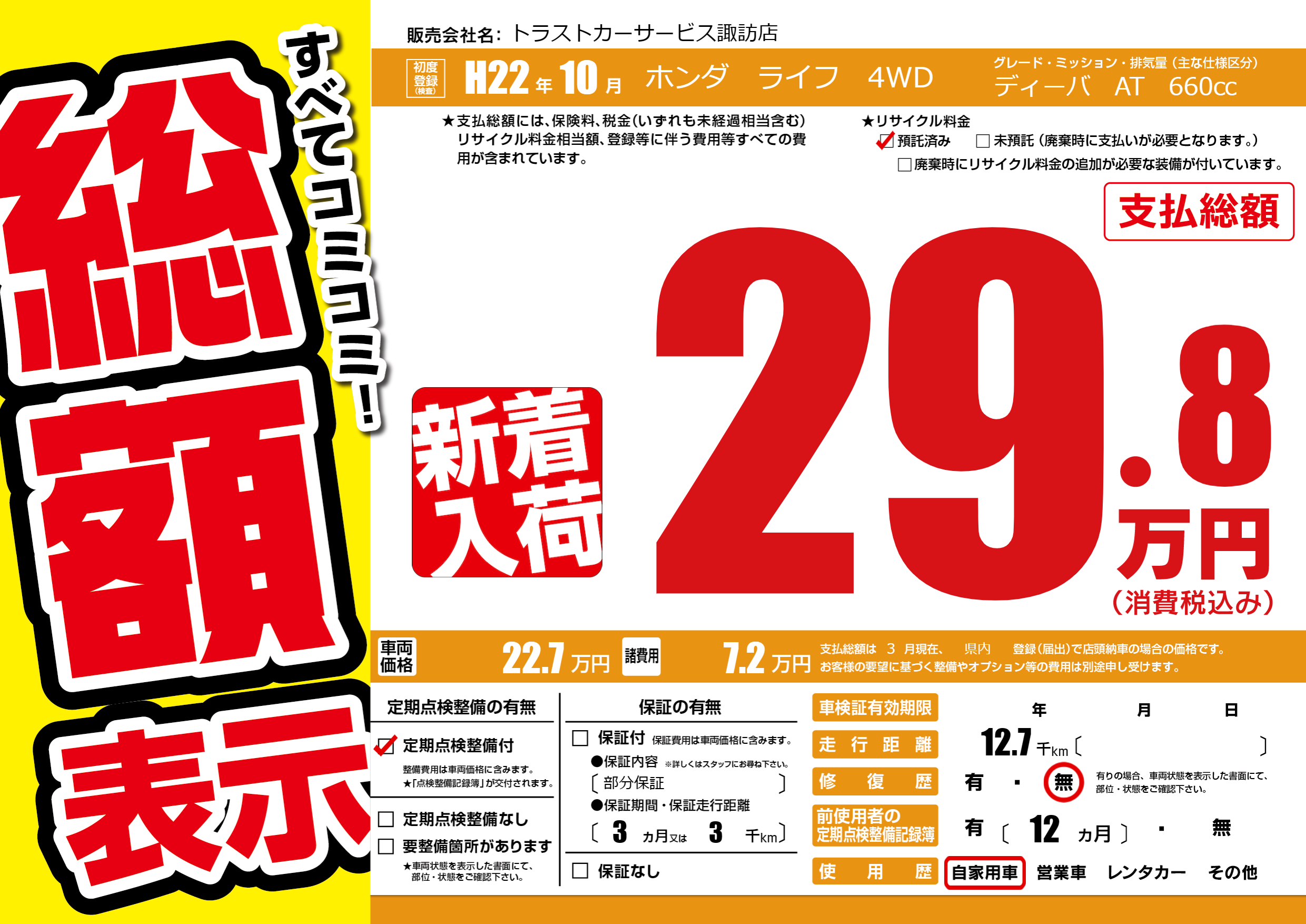 | 車名 | ホンダ ライフ 4WD | グレード ミッション 排気量 |