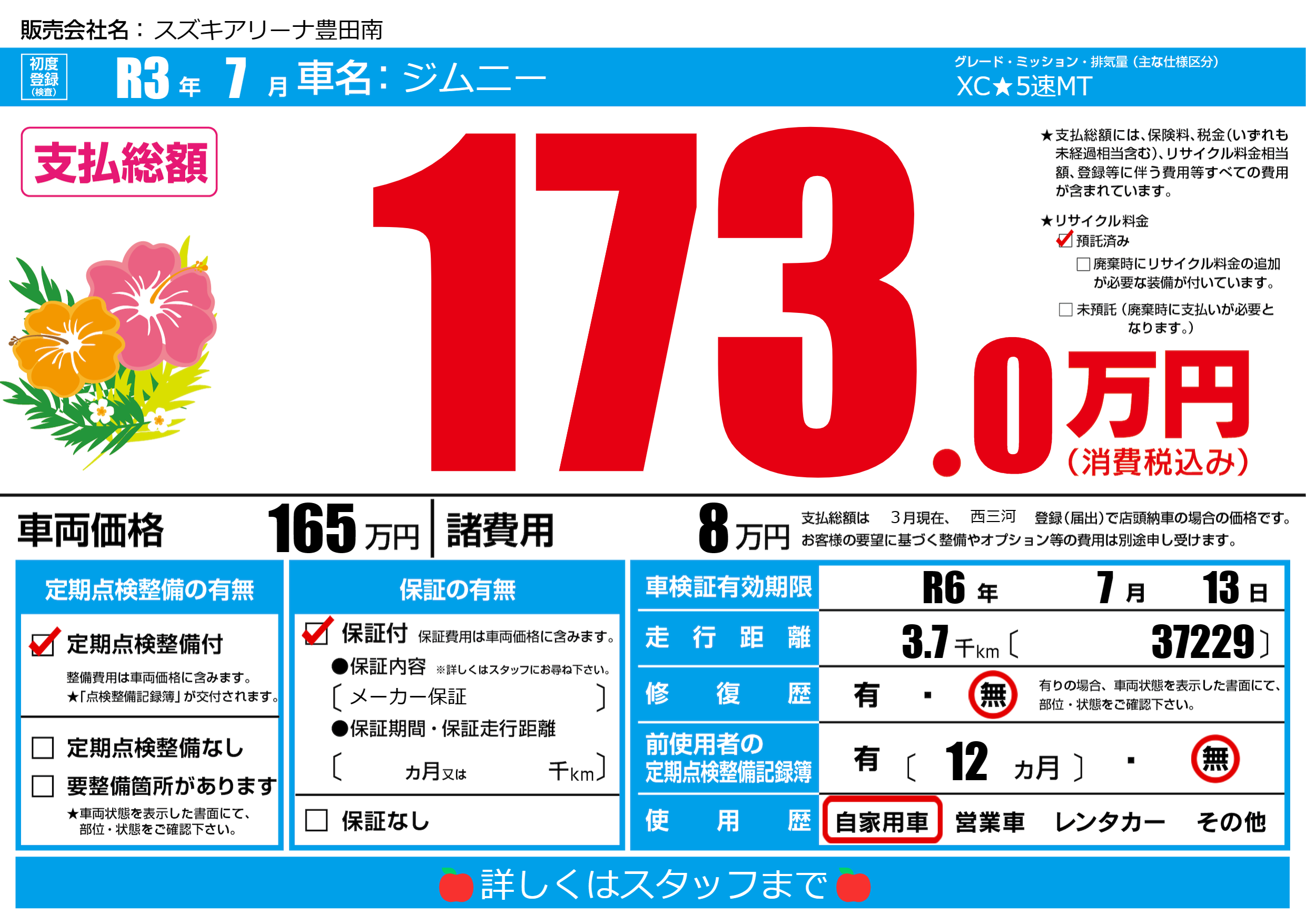 | 車検制限 | R6年 7月 13日 | ||