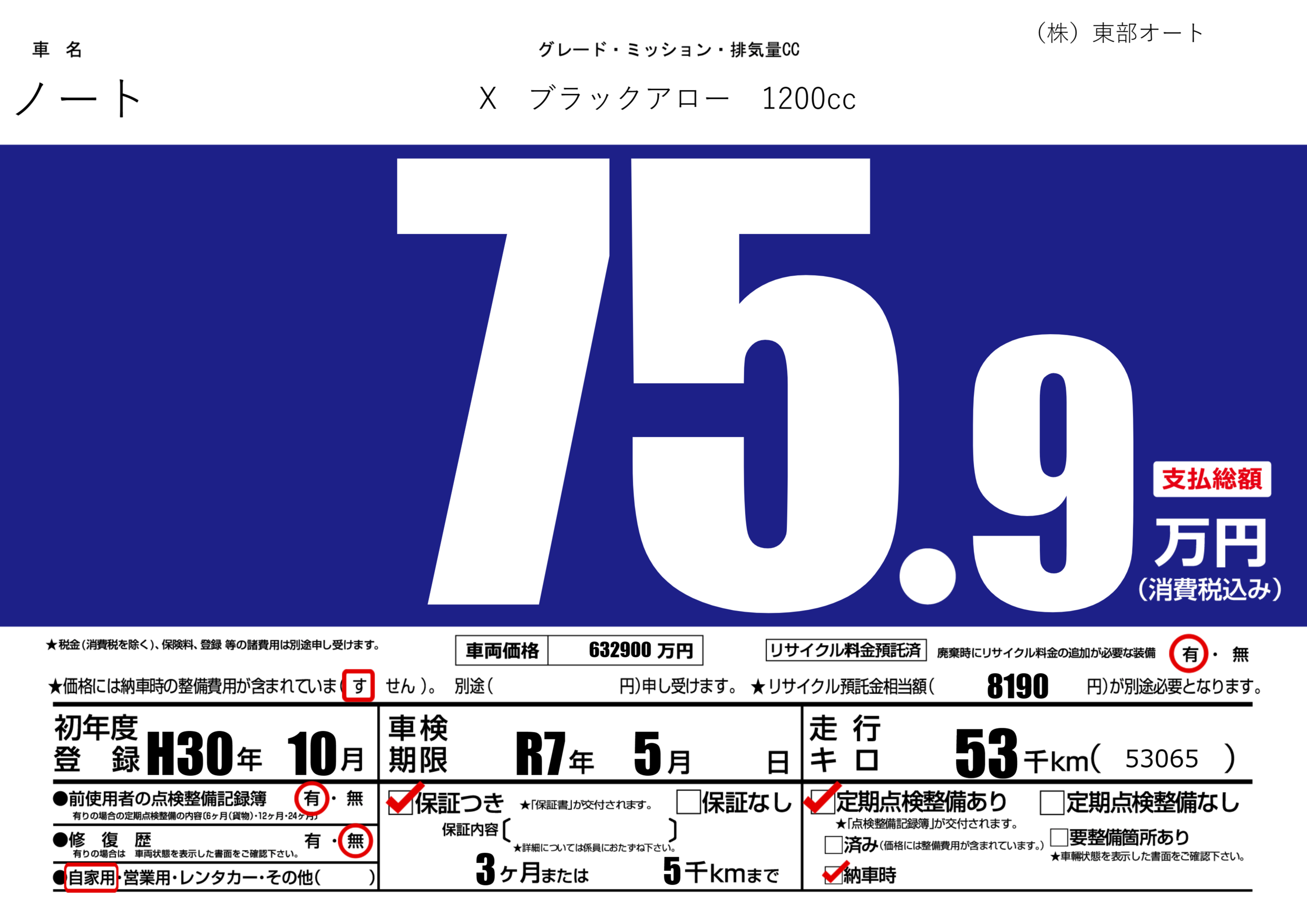 | 定期点検整備 | 定期点検整備あり 納車時あり | ||