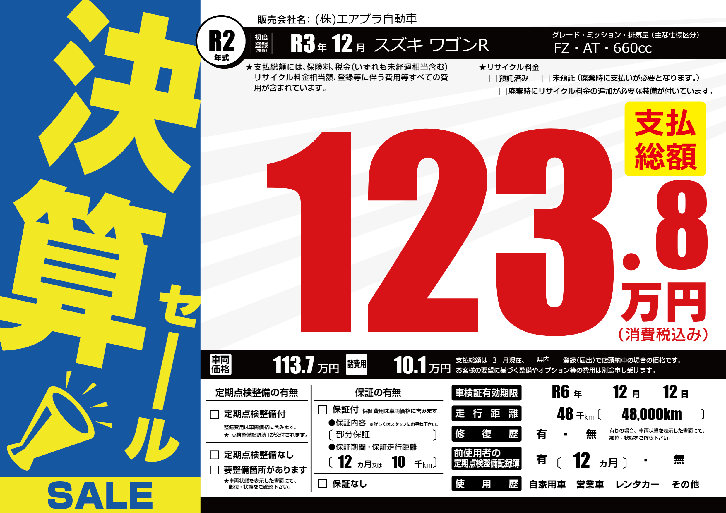 | 走行キロ | 4.8万km | 初年度登録 | R3年12月 |