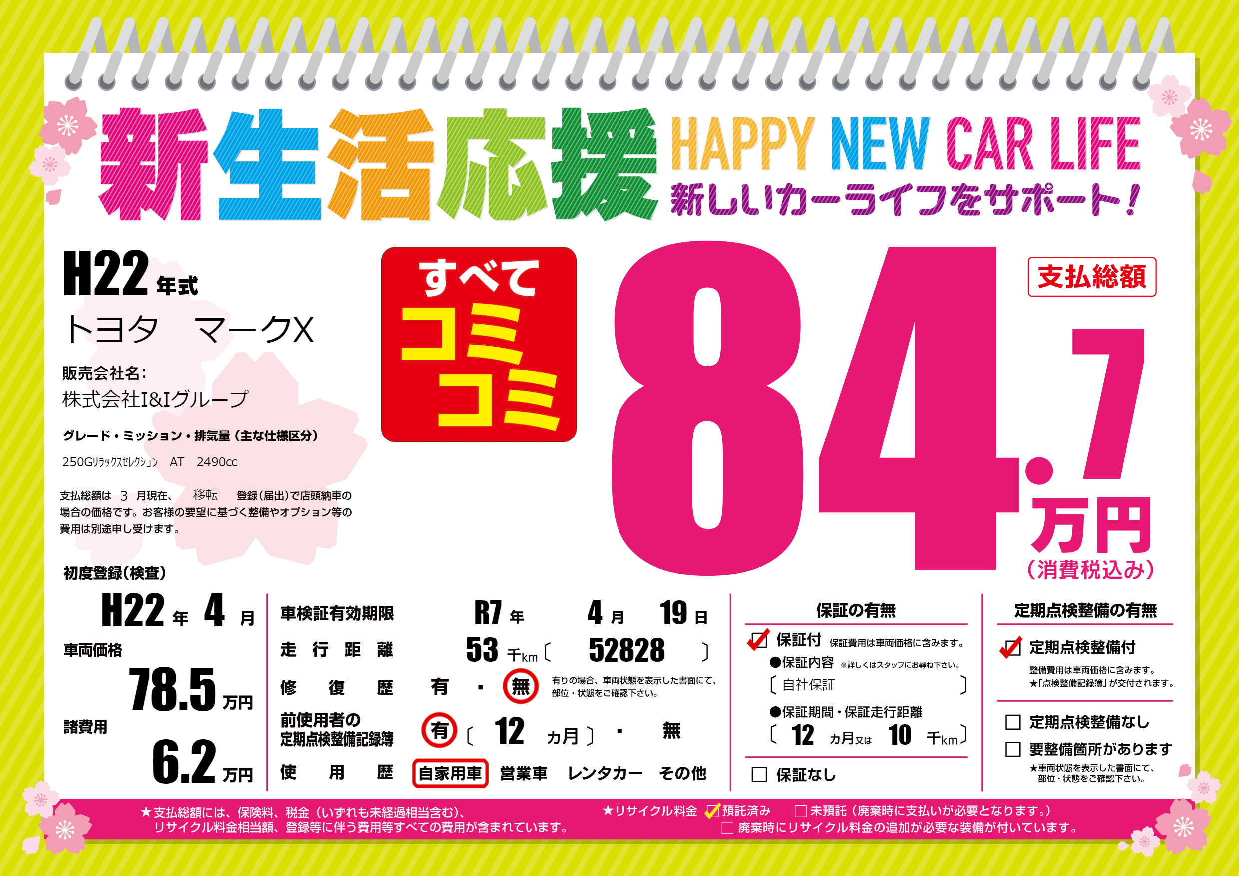 | 走行キロ | 5.3万km | 初年度登録 | H22年4月 |