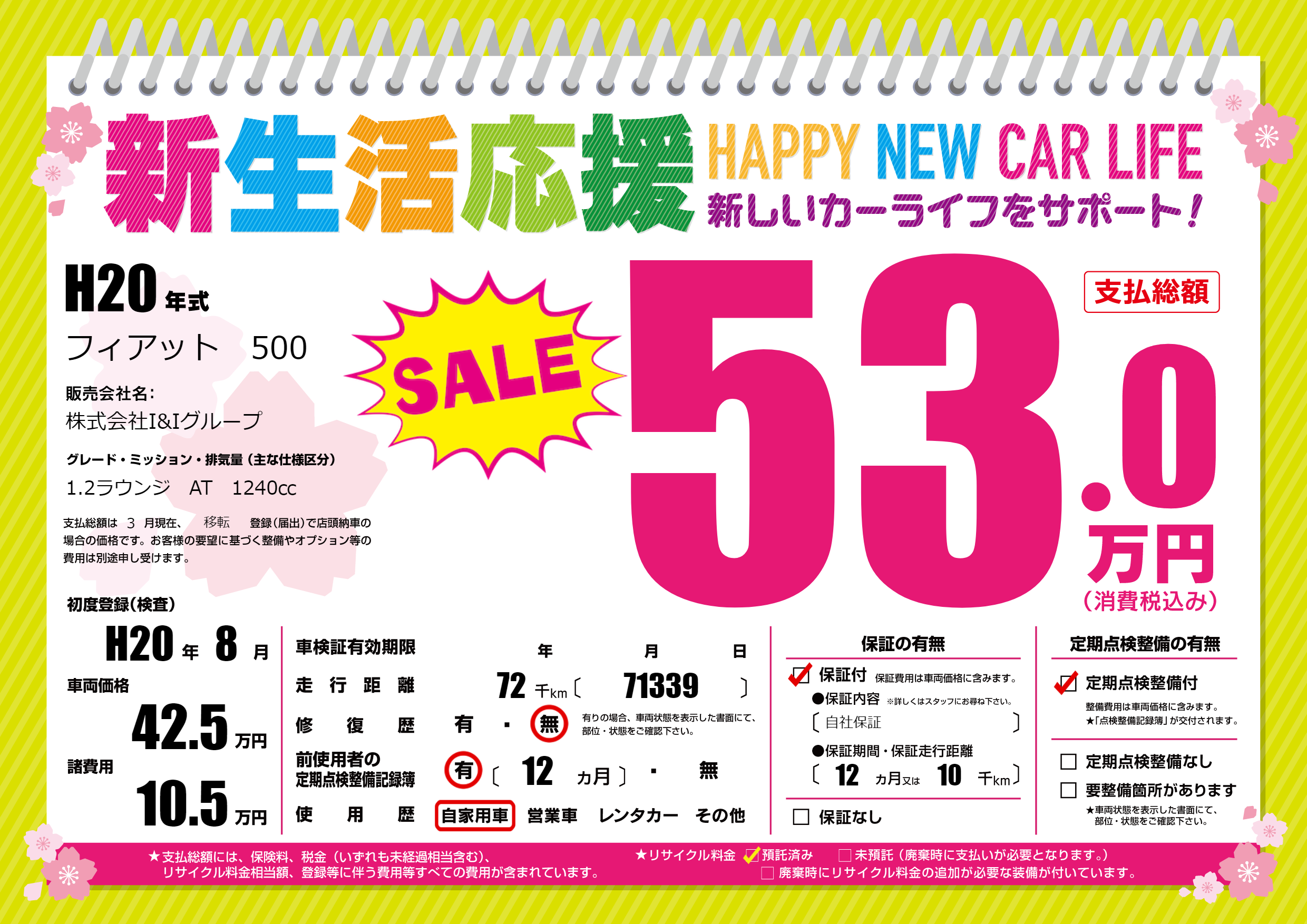 | 車名 | フィアット 500 | グレード ミッション 排気量 |