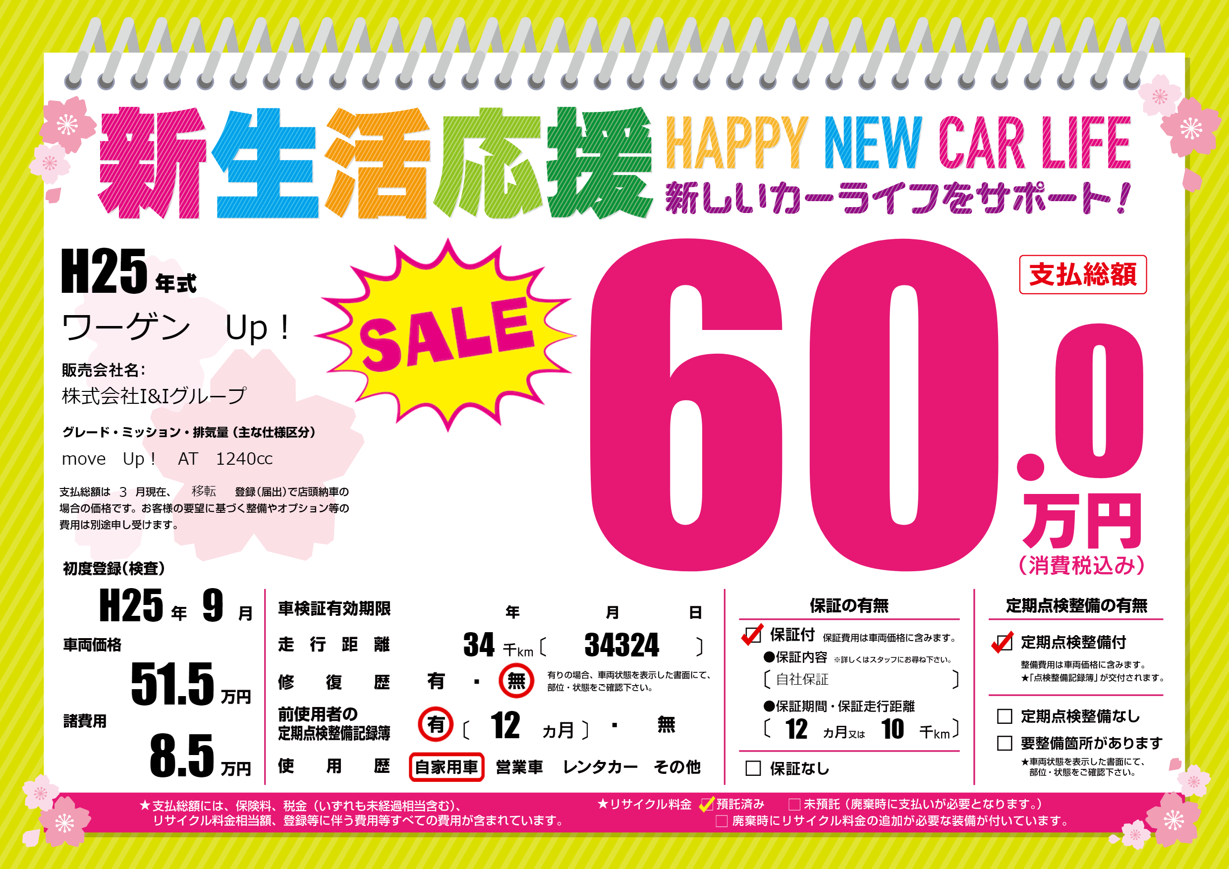 | 走行キロ | 3.4万km | 初年度登録 | H25年9月 |