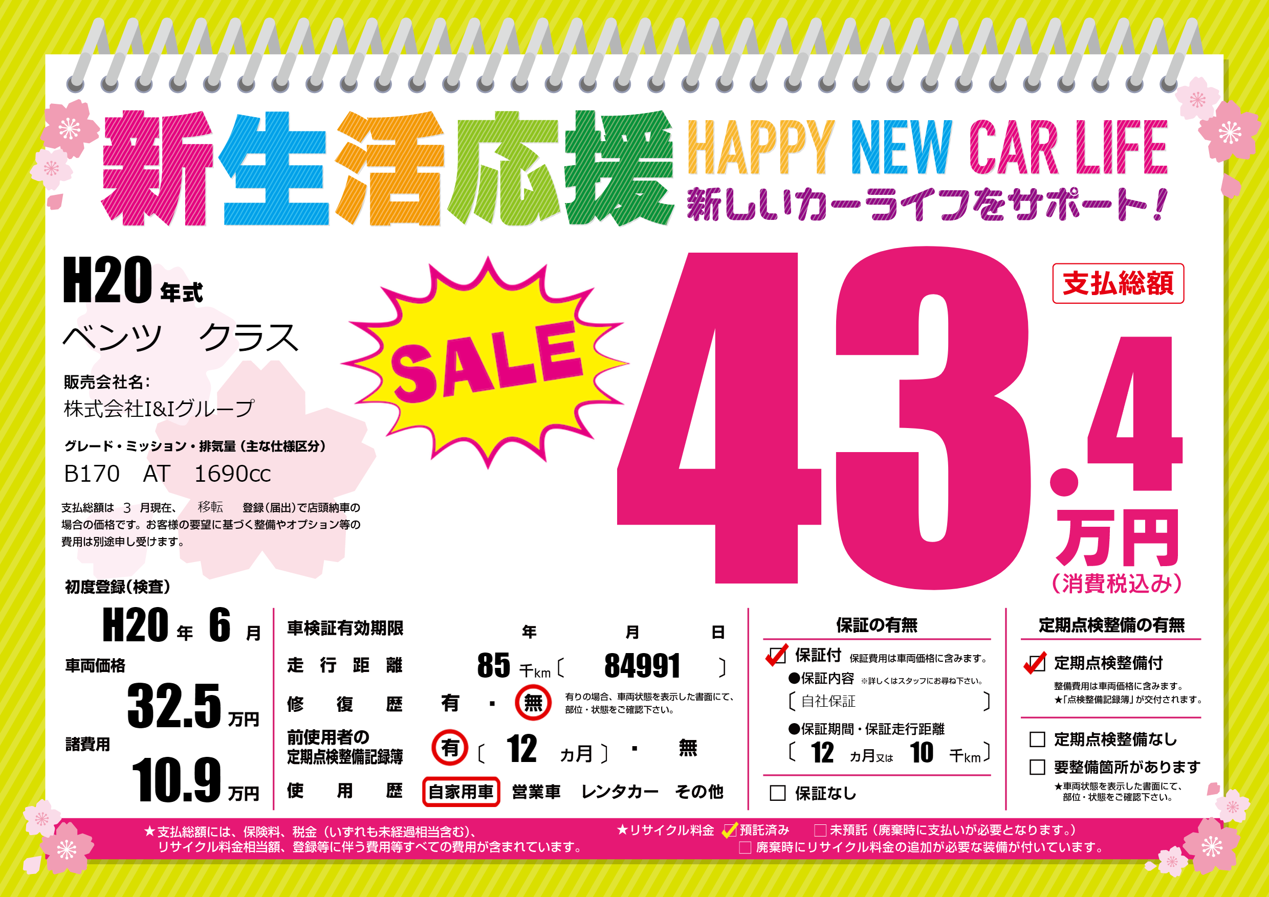 | 車名 | ベンツ クラス | グレード ミッション 排気量 |