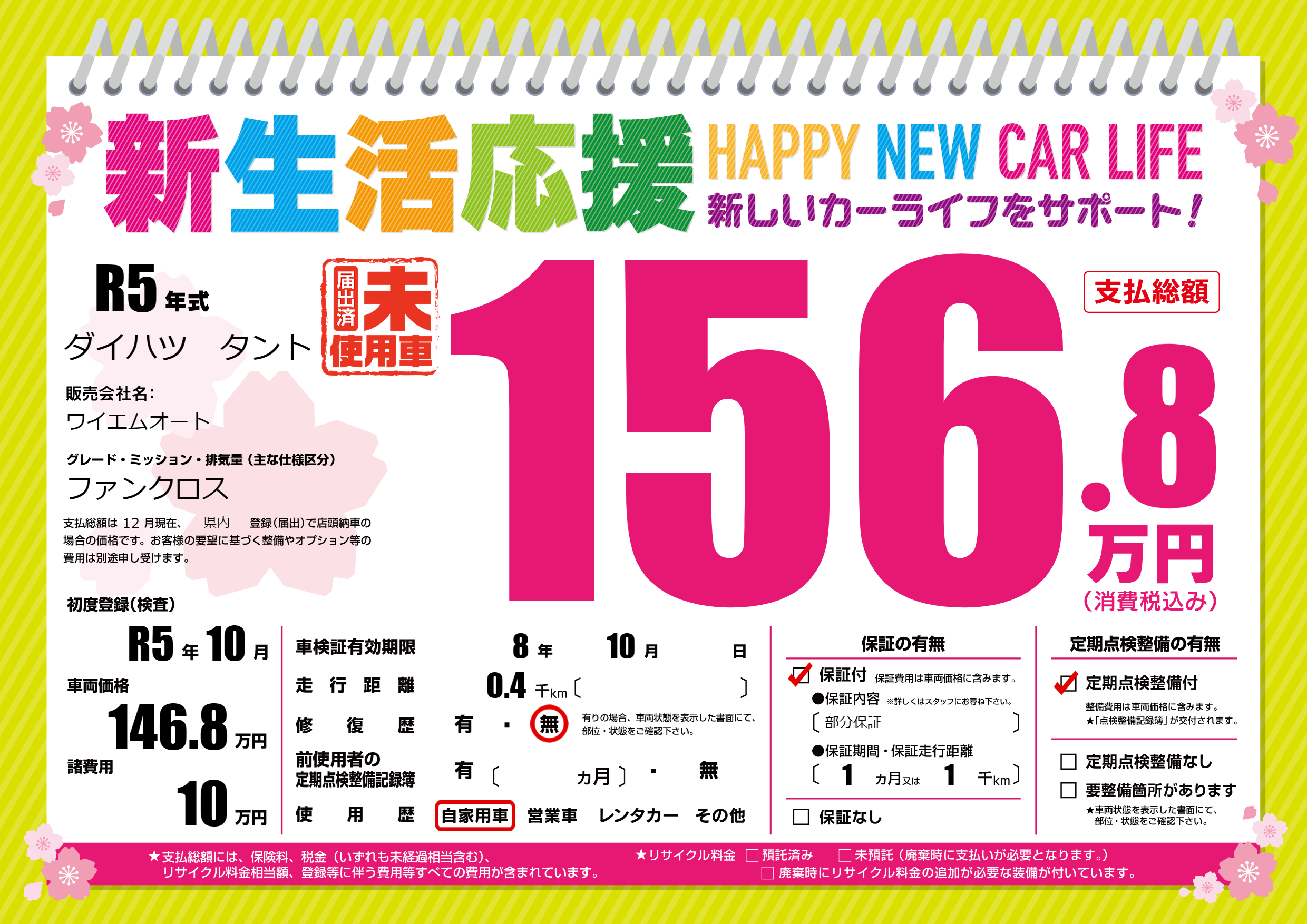 | 車名 | ダイハツ タント | グレード ミッション 排気量 |