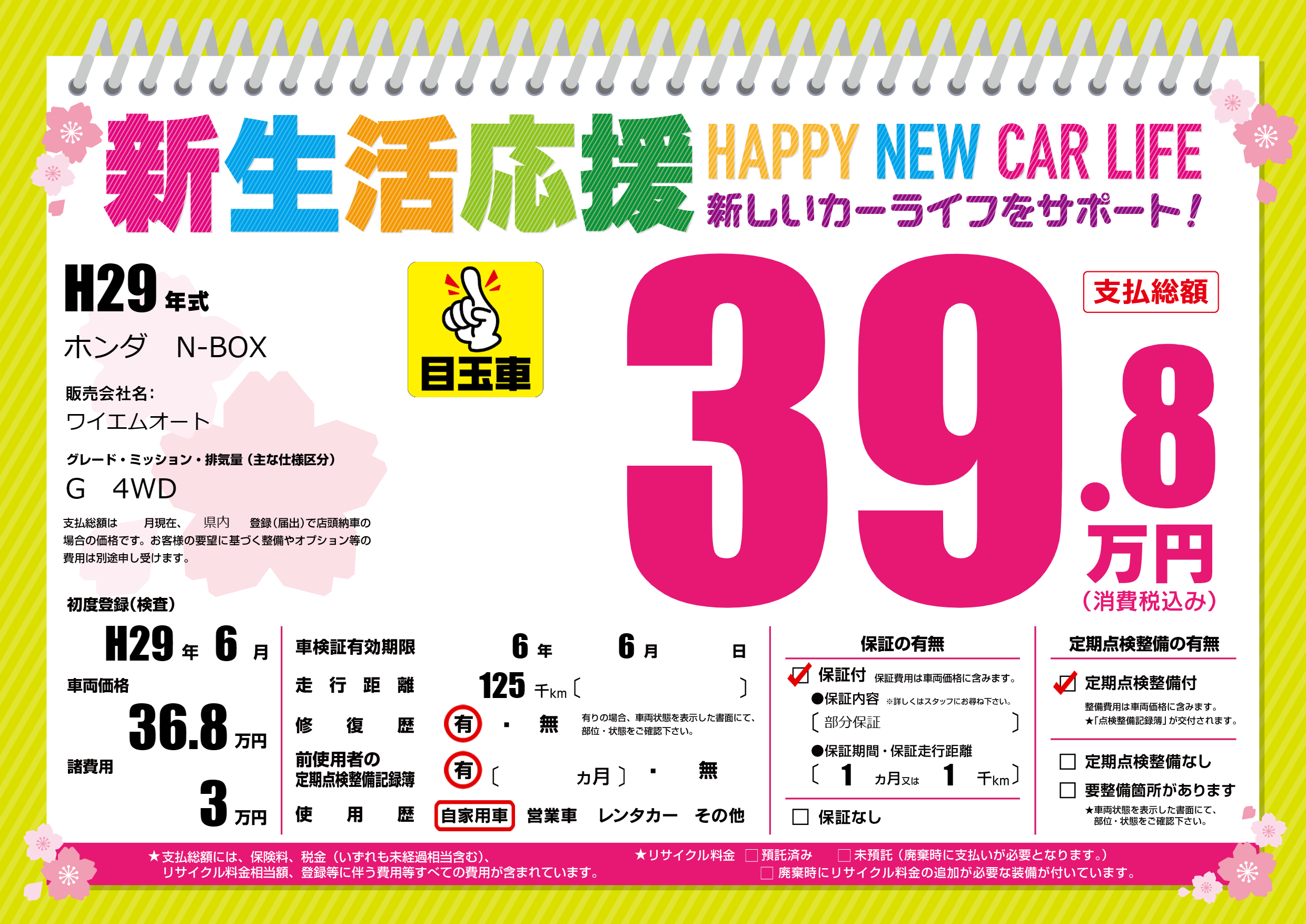 | 車名 | ホンダ N-BOX | グレード ミッション 排気量 |