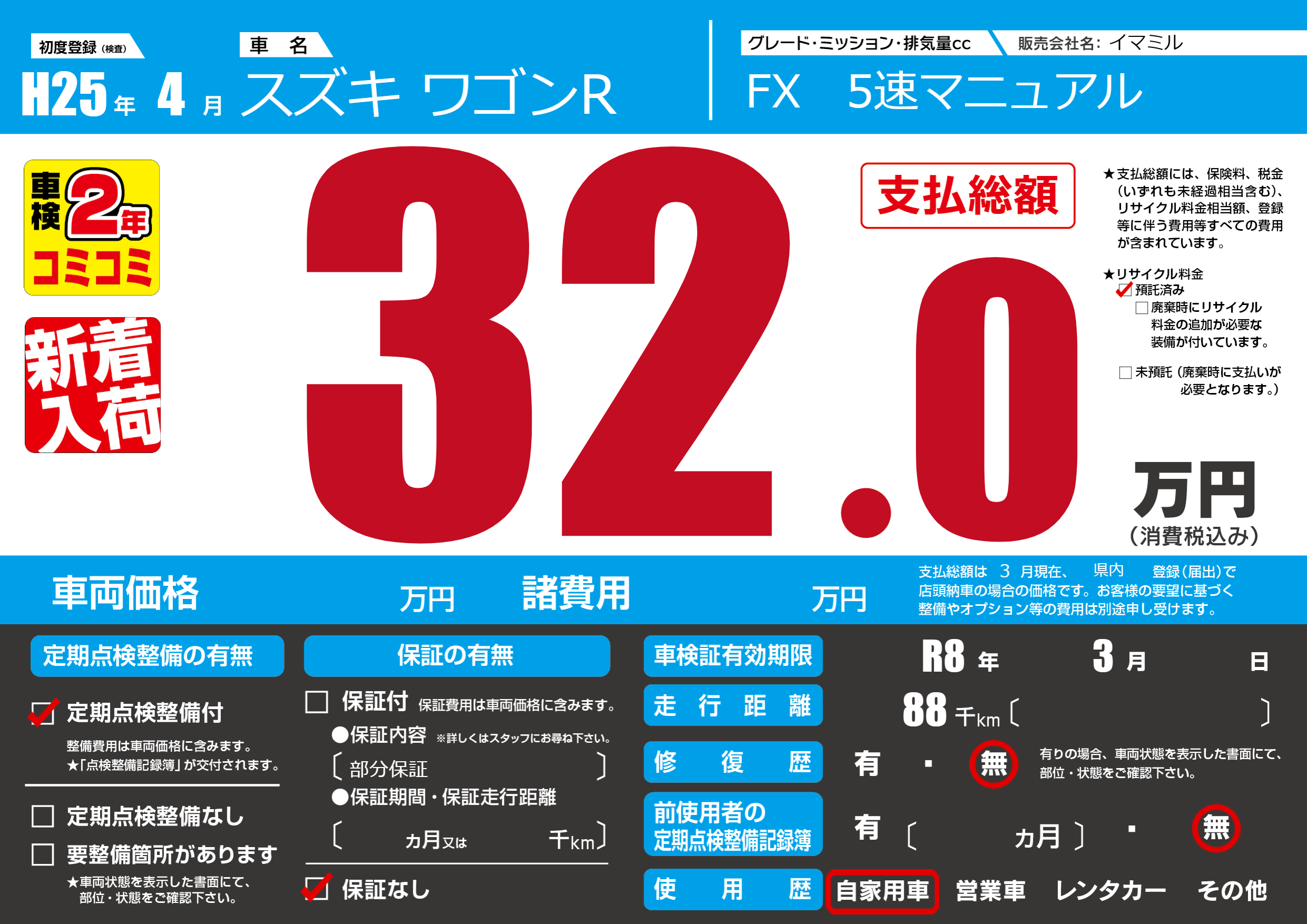 | 車名 | スズキ ワゴンR | グレード ミッション 排気量 |