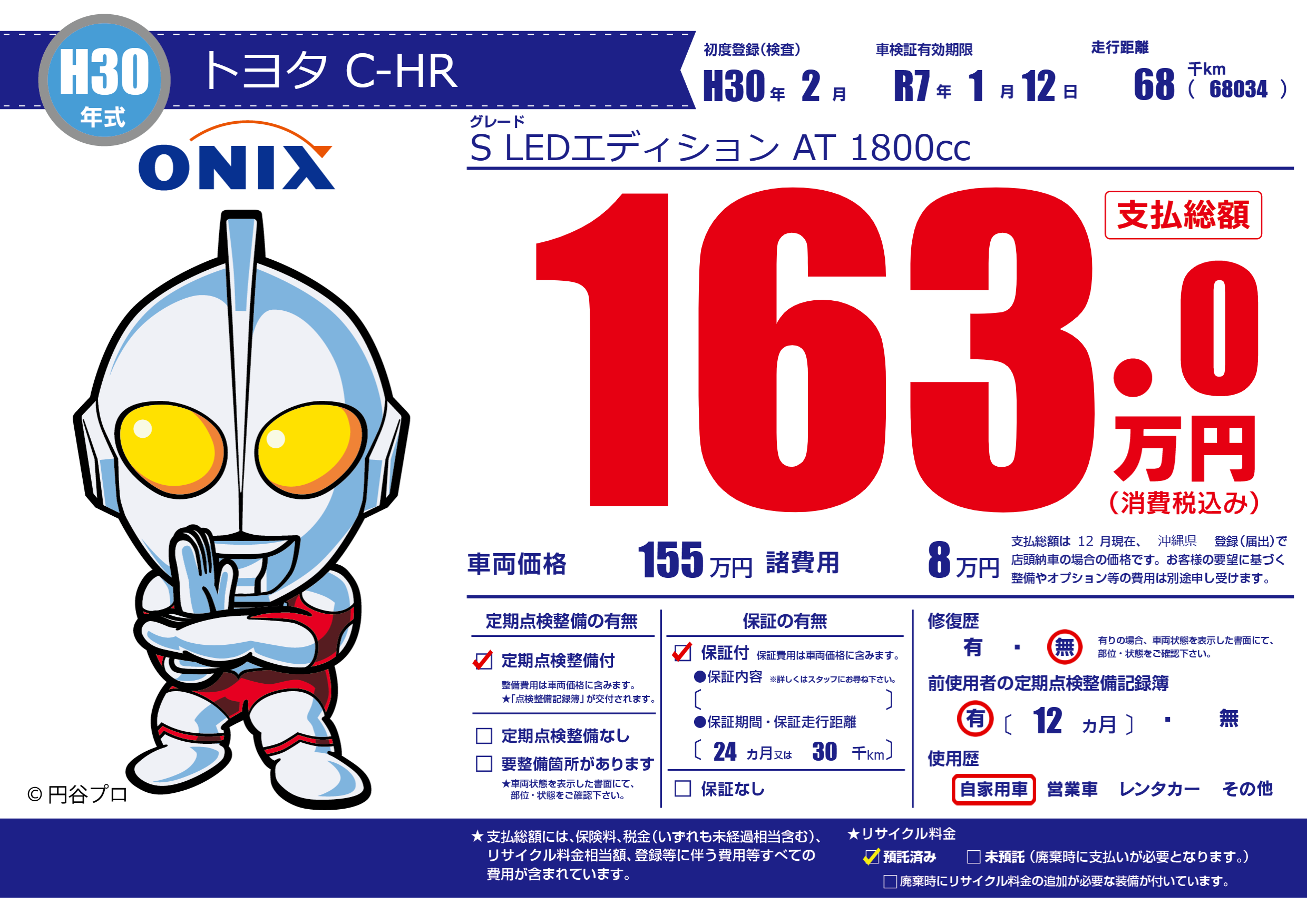| 車名 | トヨタ C-HR | グレード ミッション 排気量 |