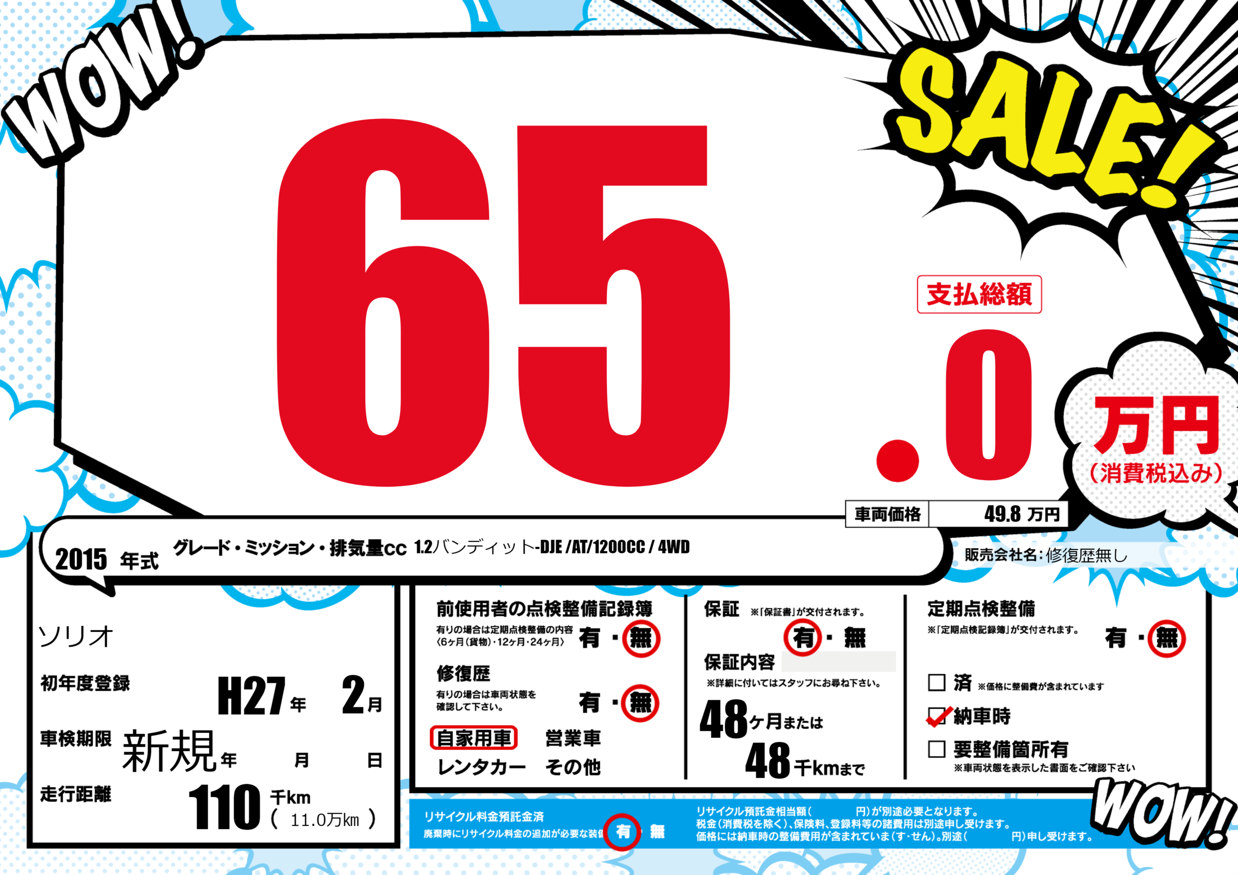 | 定期点検整備 | 定期点検整備なし 納車時あり | ||