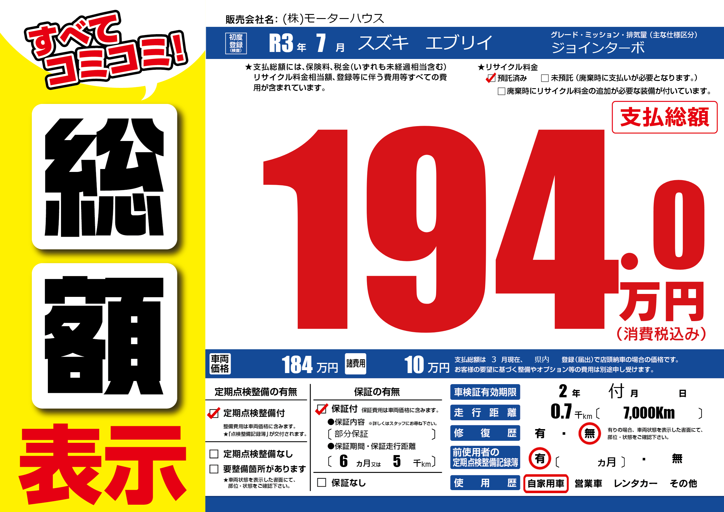 保証なし 保証内容(部分保証) 6ヶ月または(5)千kmまで |